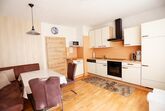 Gemütliche Wohnung mit viel Holz ausgestattet.