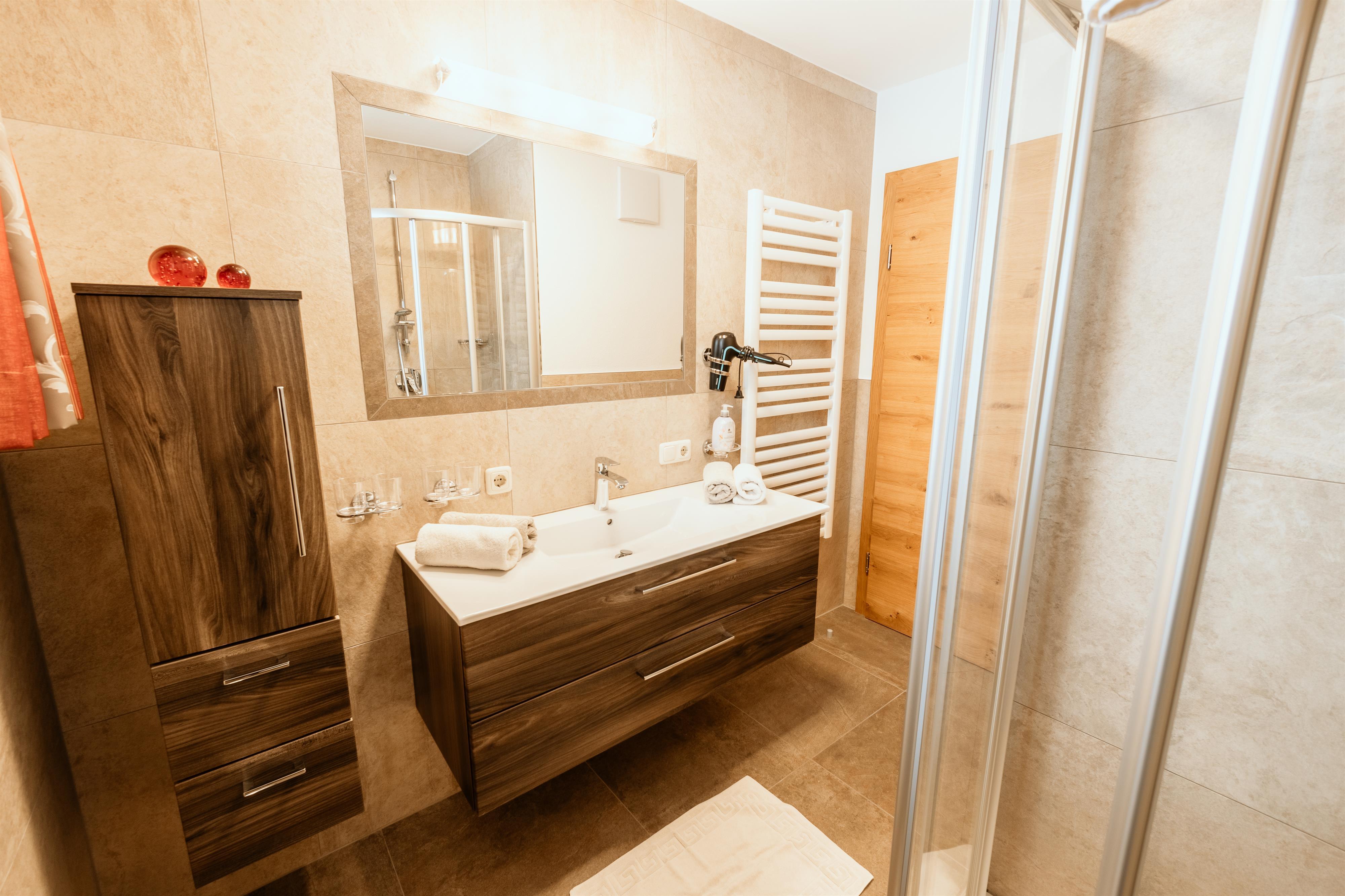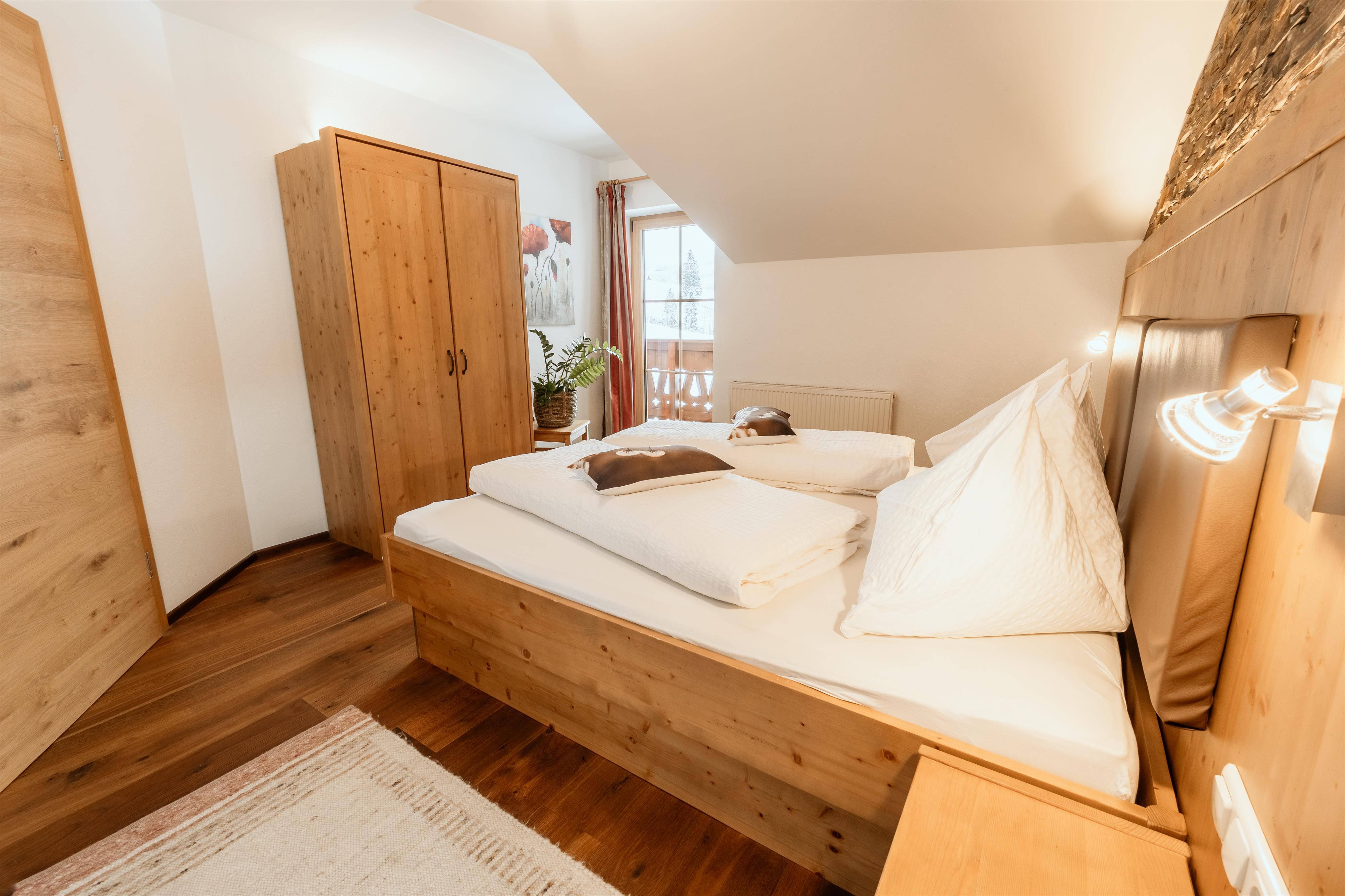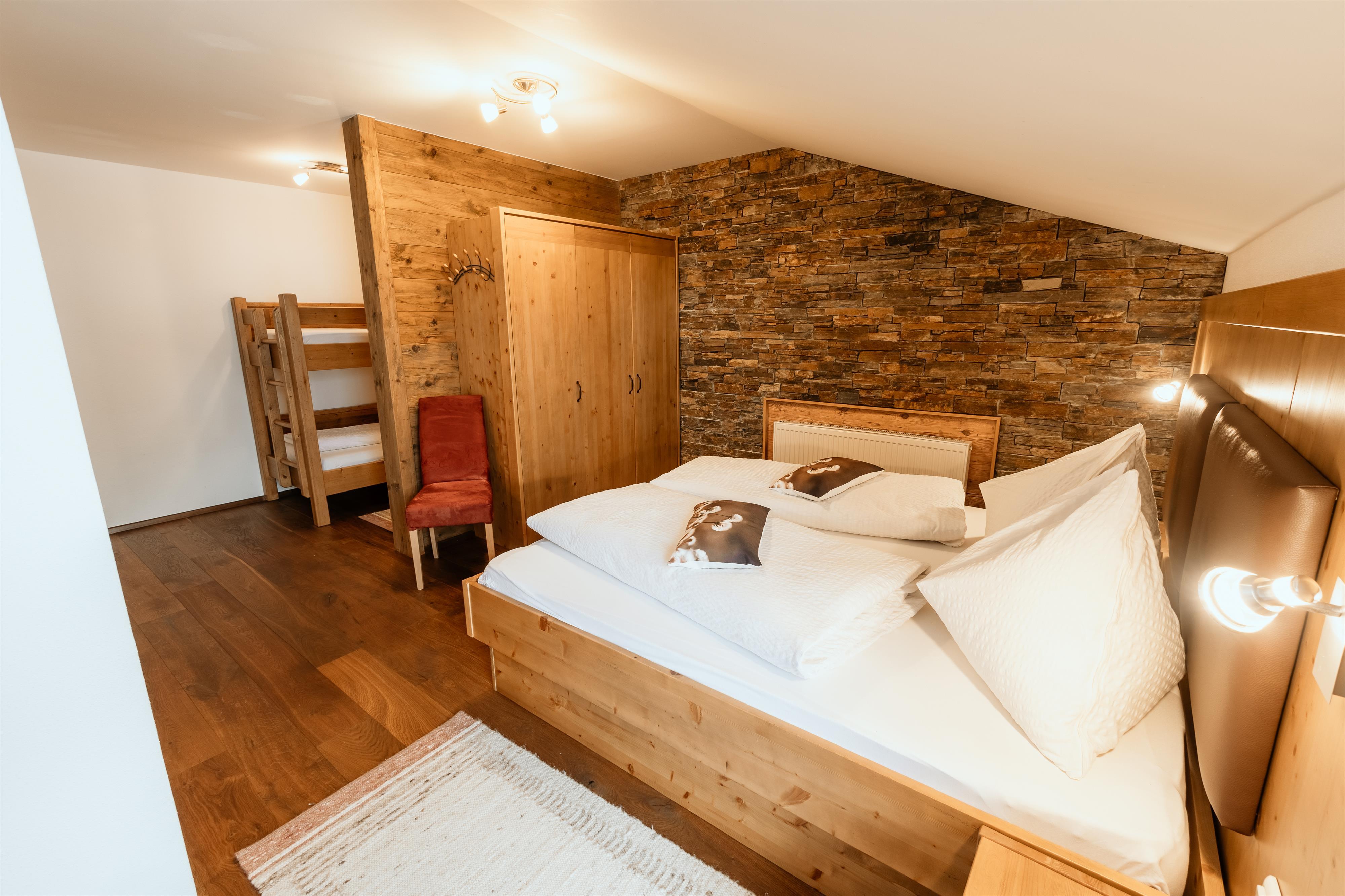 1 Schlafzimmer mit Doppelbett, 1 Schlafzimmer mit Doppelbett und zusätzlichem Etagenbett, Dusche und seperates WC, großer Vorraum, Kabel-TV, Balkon süd-u. westseitig!