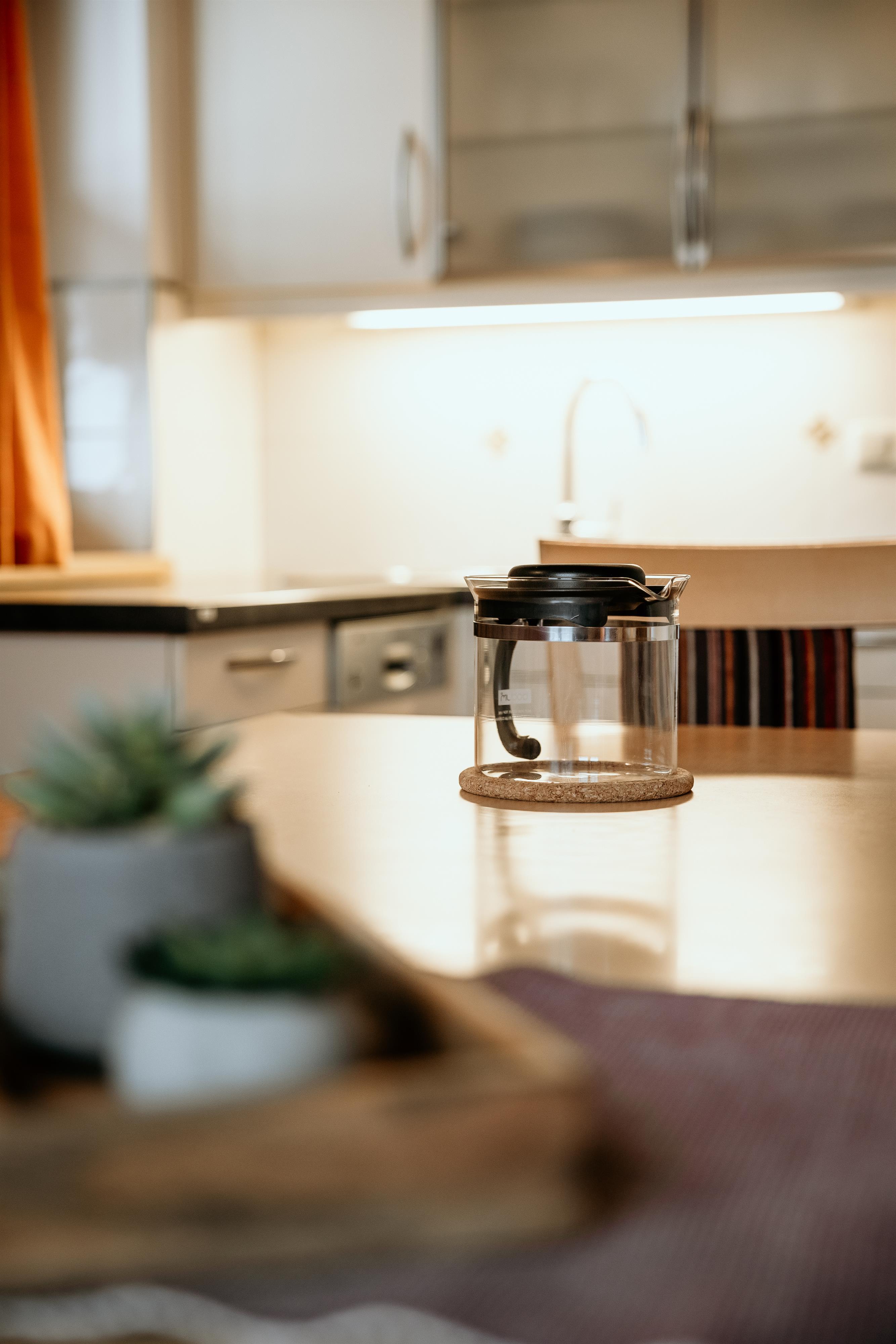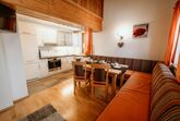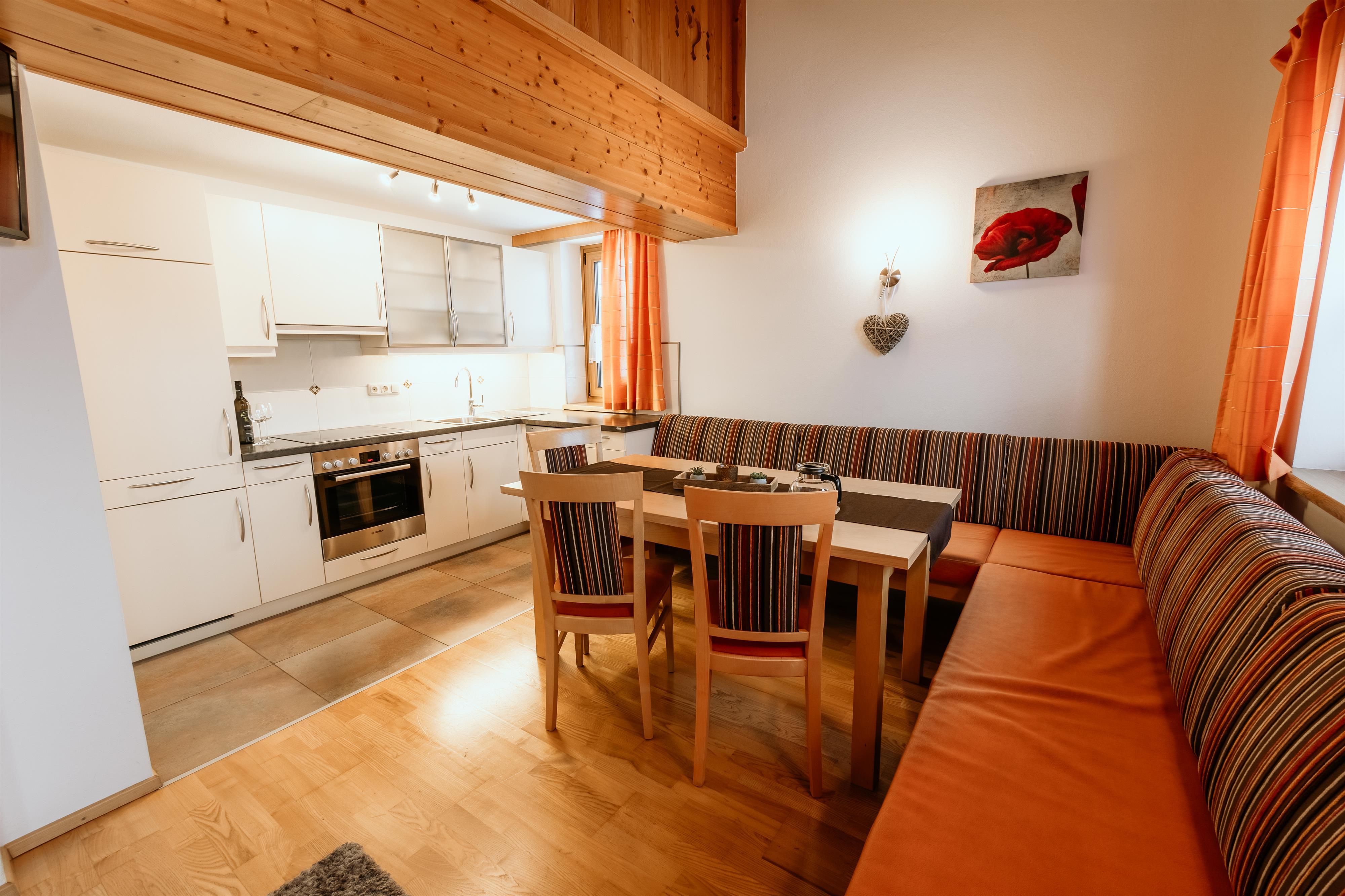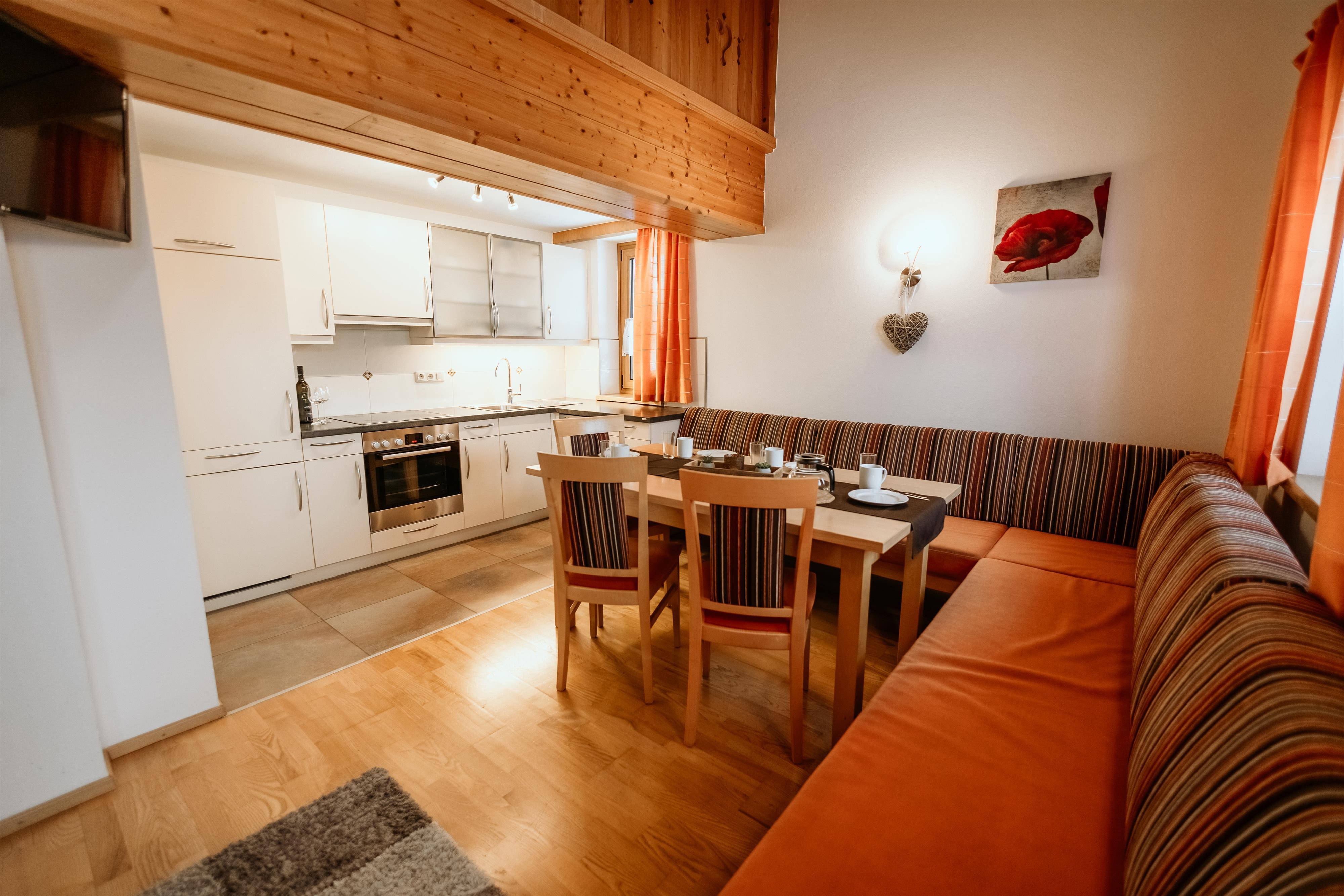 großräumige Wohnküche mit gemütlicher Essecke und Kabel-TV, Geschirrspüler.