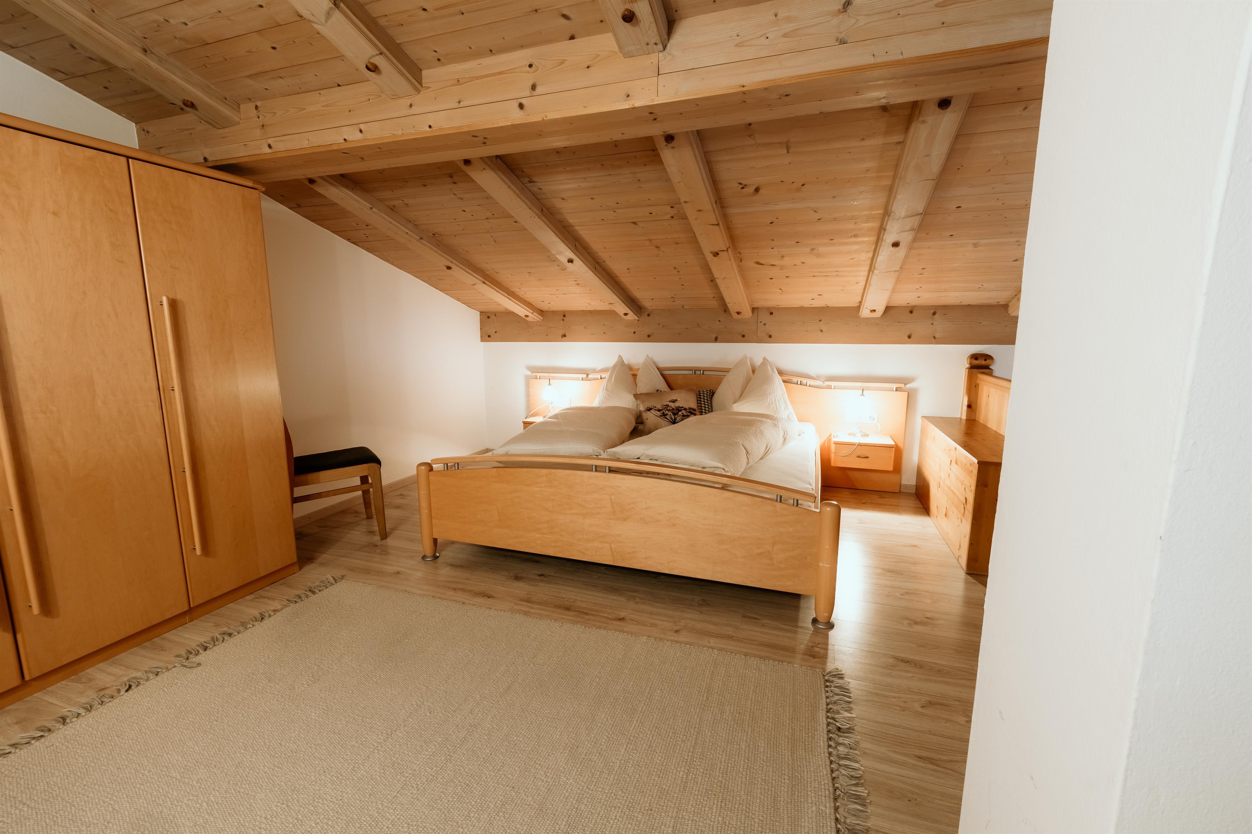 die 2 getrennten Schlafzimmer mit je einem Doppelbett sind über eine Treppe erreichbar. (Maisonette)