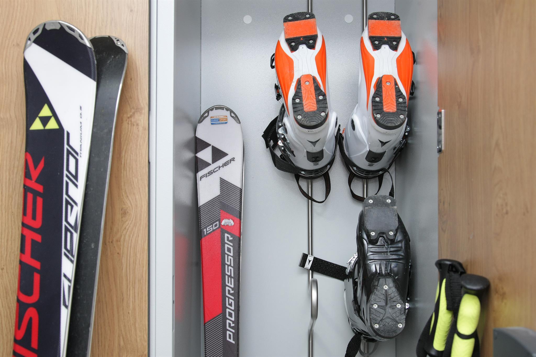 Jedes Zimmer verfügt im Skikeller über einen absperrbaren Skischrank und beheizten Skischuhtrockner. Weiteres befindet sich im Skiraum eine Waschmaschine sowie ein Wäschetrockner der gegen Gebühr benutzt werden kann. Bei Bedarf kann an der Rezeption auch ein Bügeleisen/-brett ausgeliehen werden.