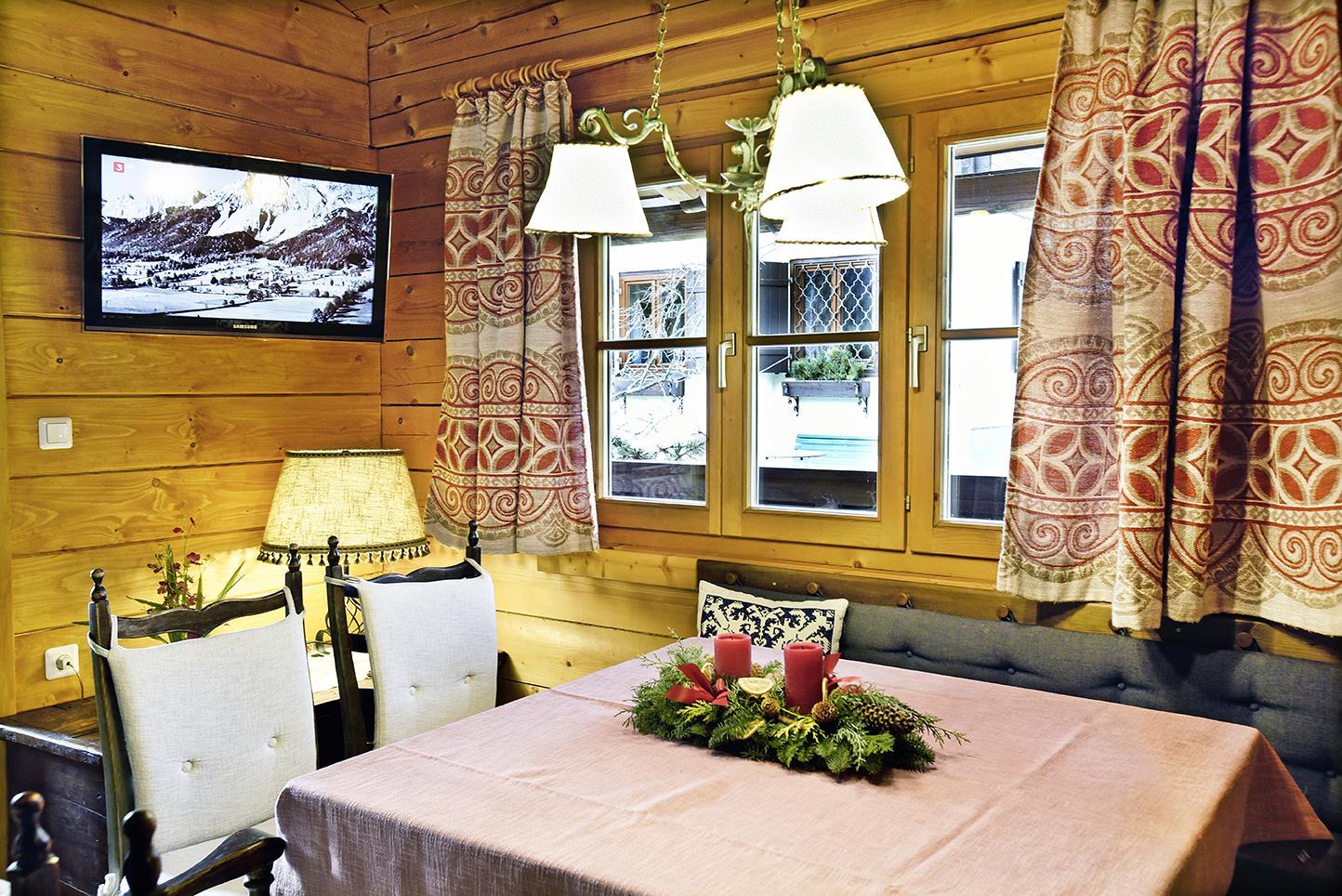 Gemütlich großer Wohnraum mit rustikalem Flair-Interieur: Kachelofen mit hängender Trocknungsvorrichtung, Essecke, 2 separate Doppelbett Schlafräume, extra WC/Dusche, Kinderschlafzimmer 2 Doppelstockbetten, komplette Küche/Geschirrspüler, elektrische Heizung,Zustellservice/Bäckerei, Parkplätze/Garage auf Anfrage, extra versperrbare Raumeinheit für Schier Depot, Bank, Boards, Schuhwärmer
