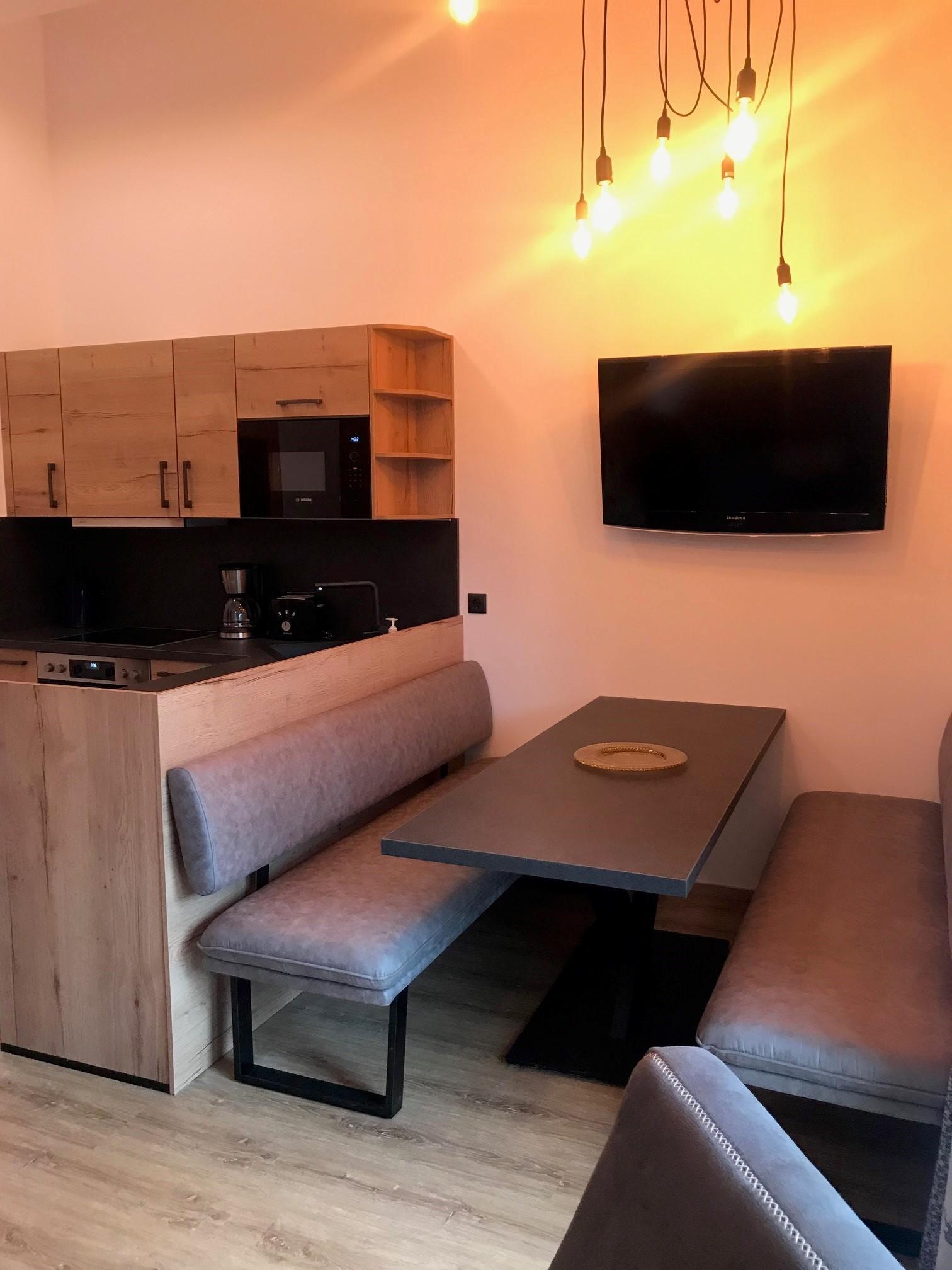 2 Schlafzimmer + 1 Sofabett, voll ausgestattete Kochnische mit Sitzecke,
