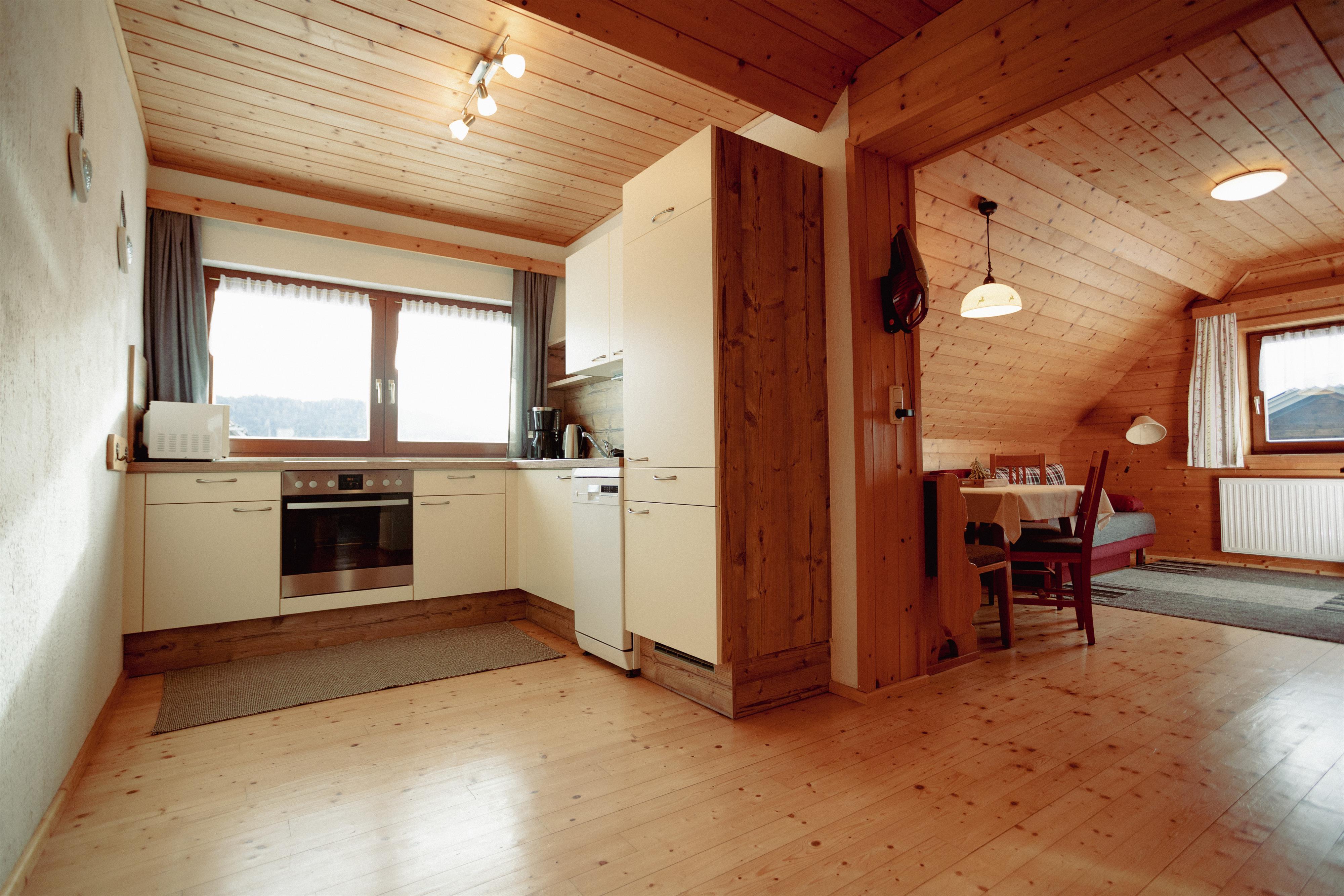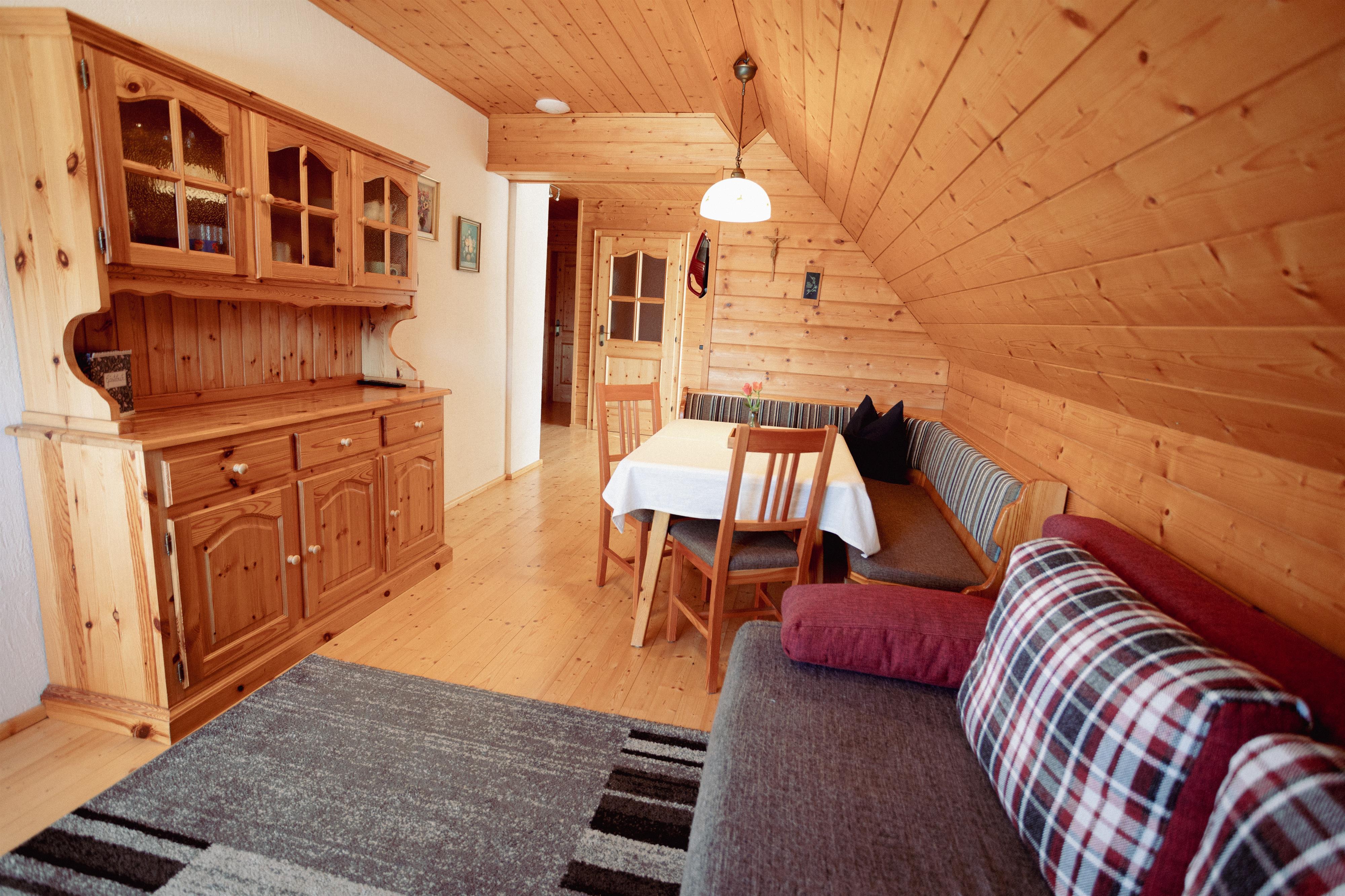 Gemütliche Wohnung mit viel Holz ausgestattet.