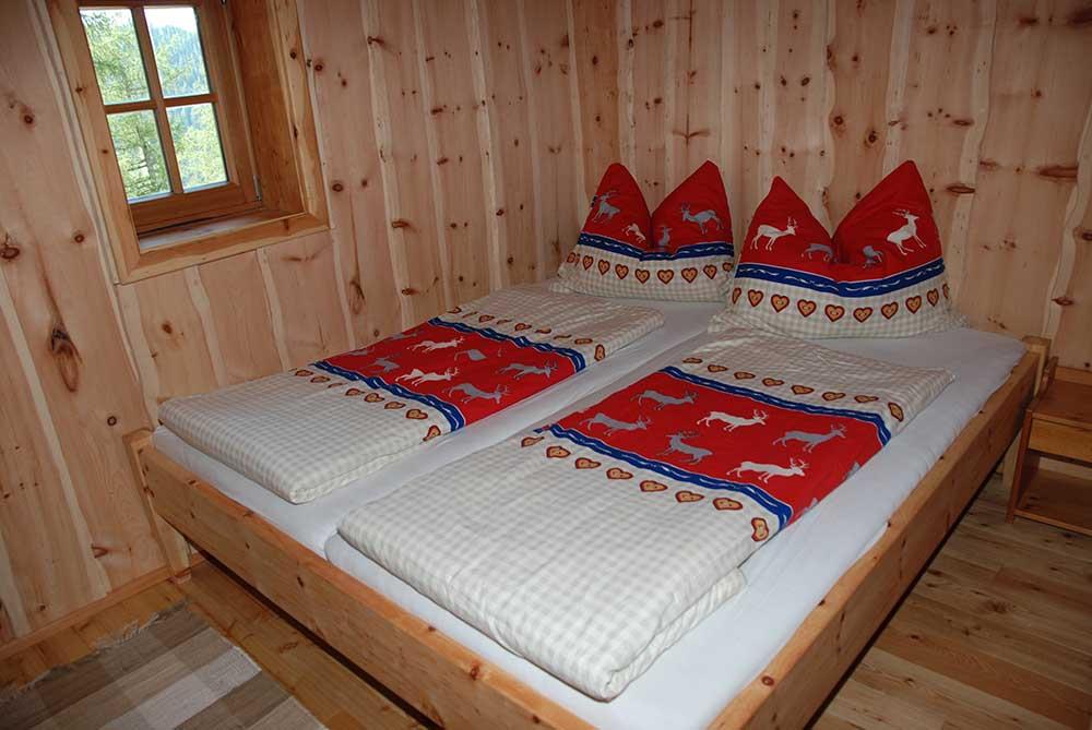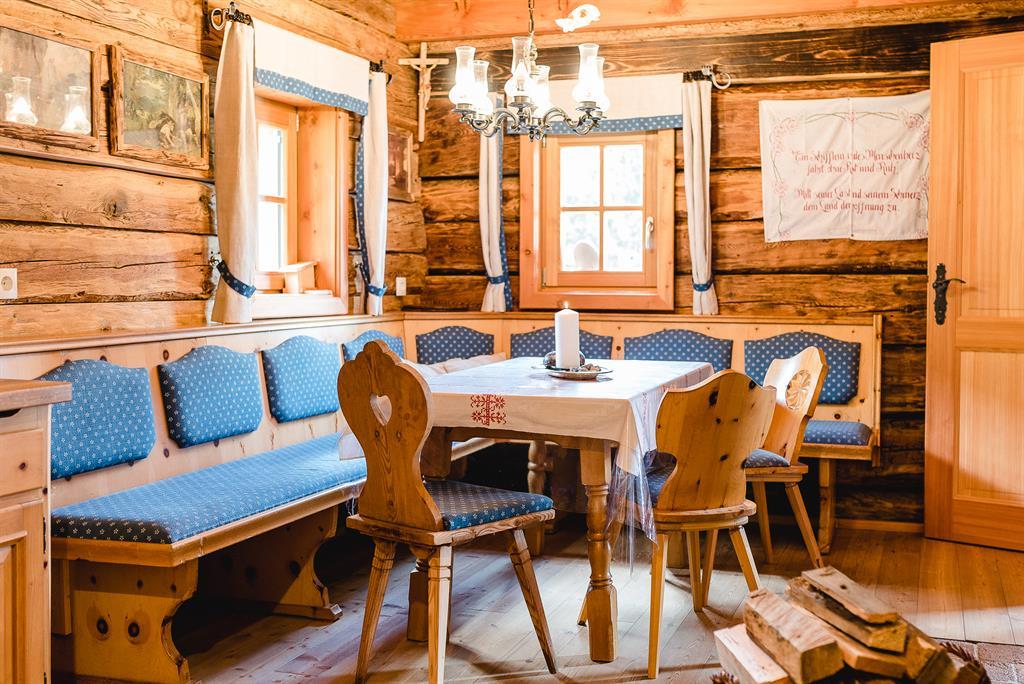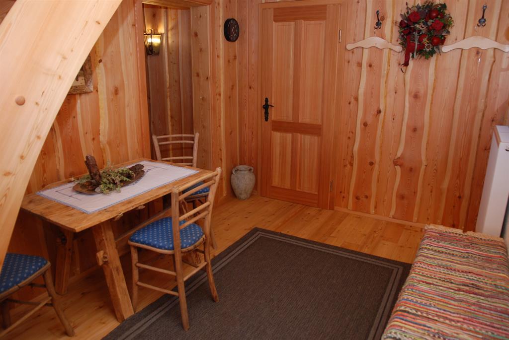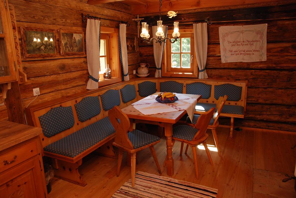 Erholung auf 1680m - komfortables & gemütliches Ambiente Im Erdgeschoss befindet sich eine gemütliche Hüttenstube mit Sitzecke und Relaxliege, Küchenteil, Warmwasser,Abwasch und Holzofen. In unmittelbarer Nähe zu dem einzigartigen, aus Zirbenholz angefertigten Doppelzimmer befindet sich eine Innentoillete , ein kühler Lagerkeller sowie der Badebereich mit einer original finnischen Sauna mit Holzofen und Dusche. Für kuschelige Wärme sorgt eine, von der Hüttenstube befeuerte Zentralheizung. Über dem Vorraum mit Garderobe kommen Sie zum Ausgang mit überdachter Terrasse mit mehreren Sitzplätzen, wo Sie die herrliche Fernsicht über eine einzigartige Bergwelt genießen können. Das Obergeschoss ist mit einem Doppel- und einem Vierbettzimmer ausgestattet. Eine Photovoltaikanlage bietet genügend Strom für den Alltag. Zusätzlich sorgt ein Grillplatz und Brunnen vor der Hütte für die entsprechende Romantik. Die Müllnerhütte ist eine Selbstversorgerhütte und ist mit einem PKW auf eigene Gefahr erreichbar. Bettwäsche, Geschirrtücher & Handtücher etc. sind mitzubringen.