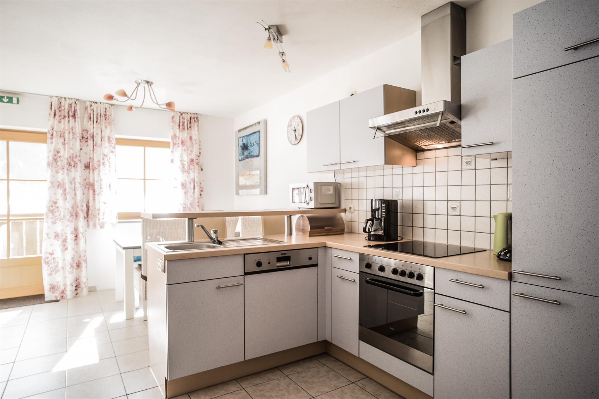 • Komplett ausgestattete Küche mit Herd, Backrohr, Geschirrspüler, Kühlschrank, Kaffeemaschine