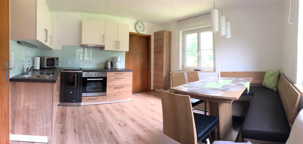 Die Wohnung (ca. 60m²) hat einen Balkon, großen Vorraum, 2 Doppelzimmer, 1 Doppelzimmer mit Ausziehcouch, eine Wohnküche mit Holzofen und TV, ein Badezimmer (mit Badewanne), extra WC, Abstellraum mit Kühl- und Gefrierkombination.