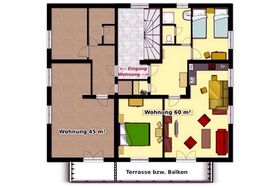 Die Ferienwohnungen sind jeweils 60 m² groß und bestehen aus einem großen Wohnraum mit LCD-TV, Sofa, komplett eingerichteter Wohnküche mit gemütlicher Eckbank, zwei Schlafzimmern, Bad mit Dusche sowie einem Vorraum mit Abstellraum - traumhafte Bergblicke vom Balkon.