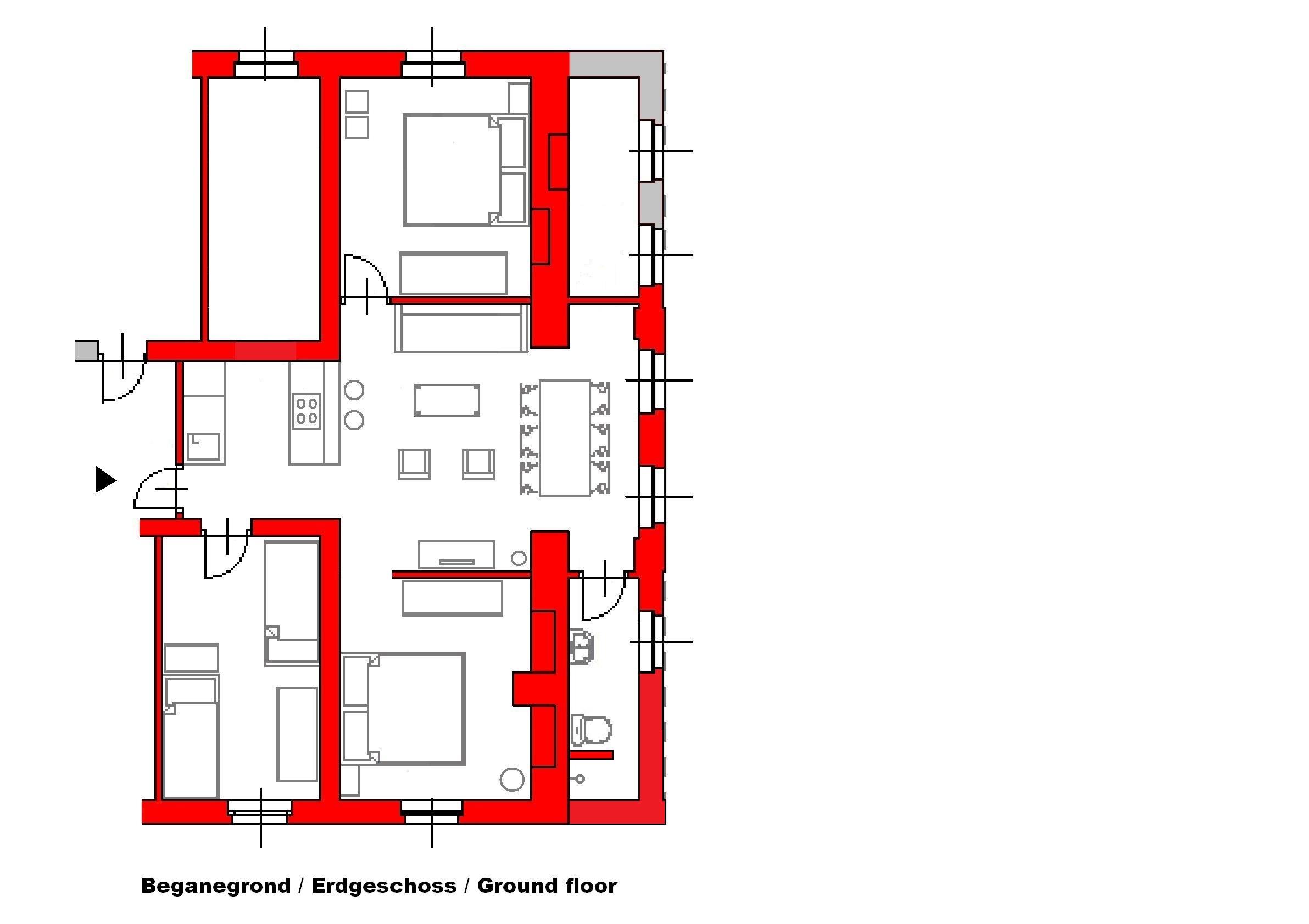 Große Wohnung mit drei Schlafzimmern im Erdgeschoss.