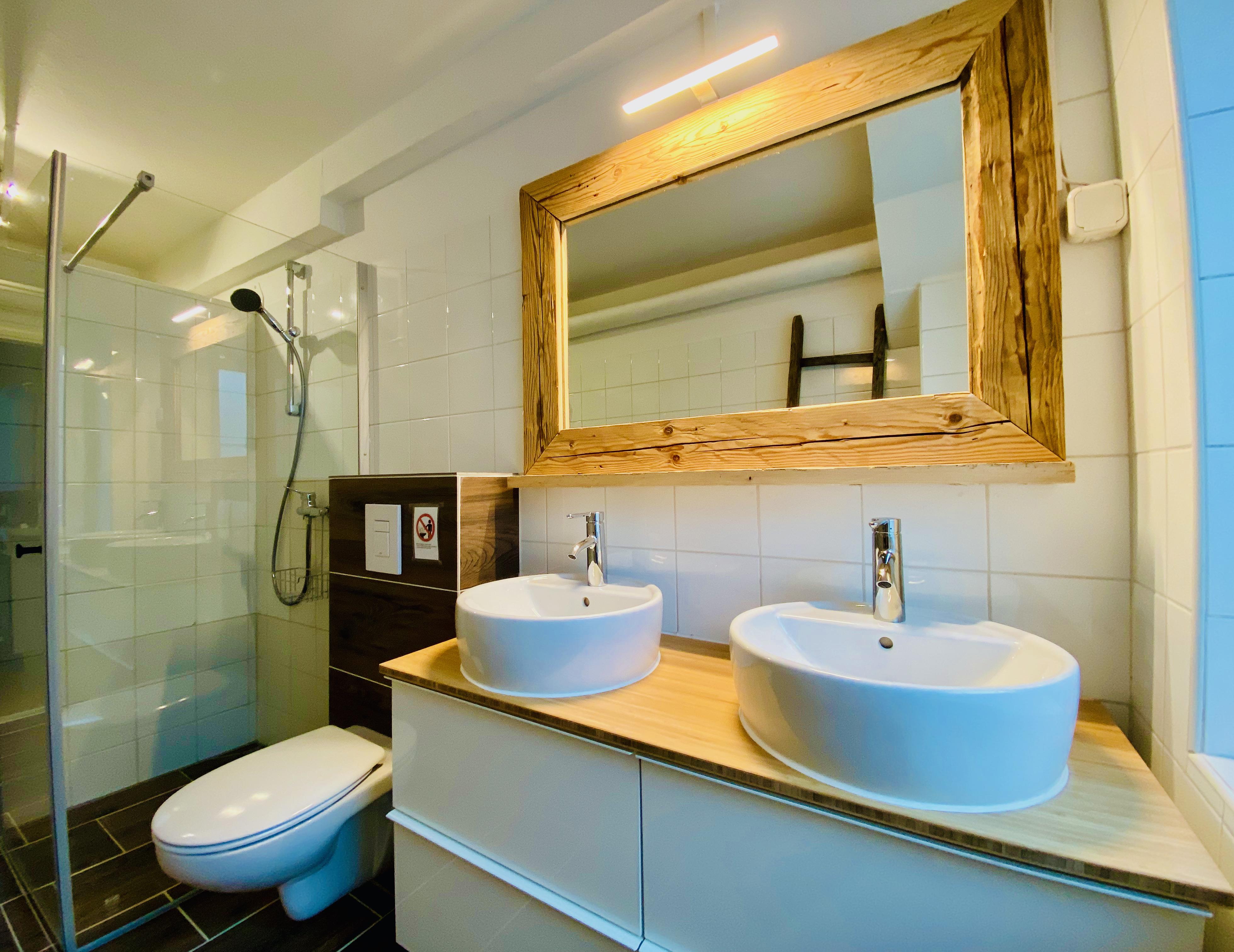 Das Bad mit Dusche und Toilette lässt keine Wünsche offen.