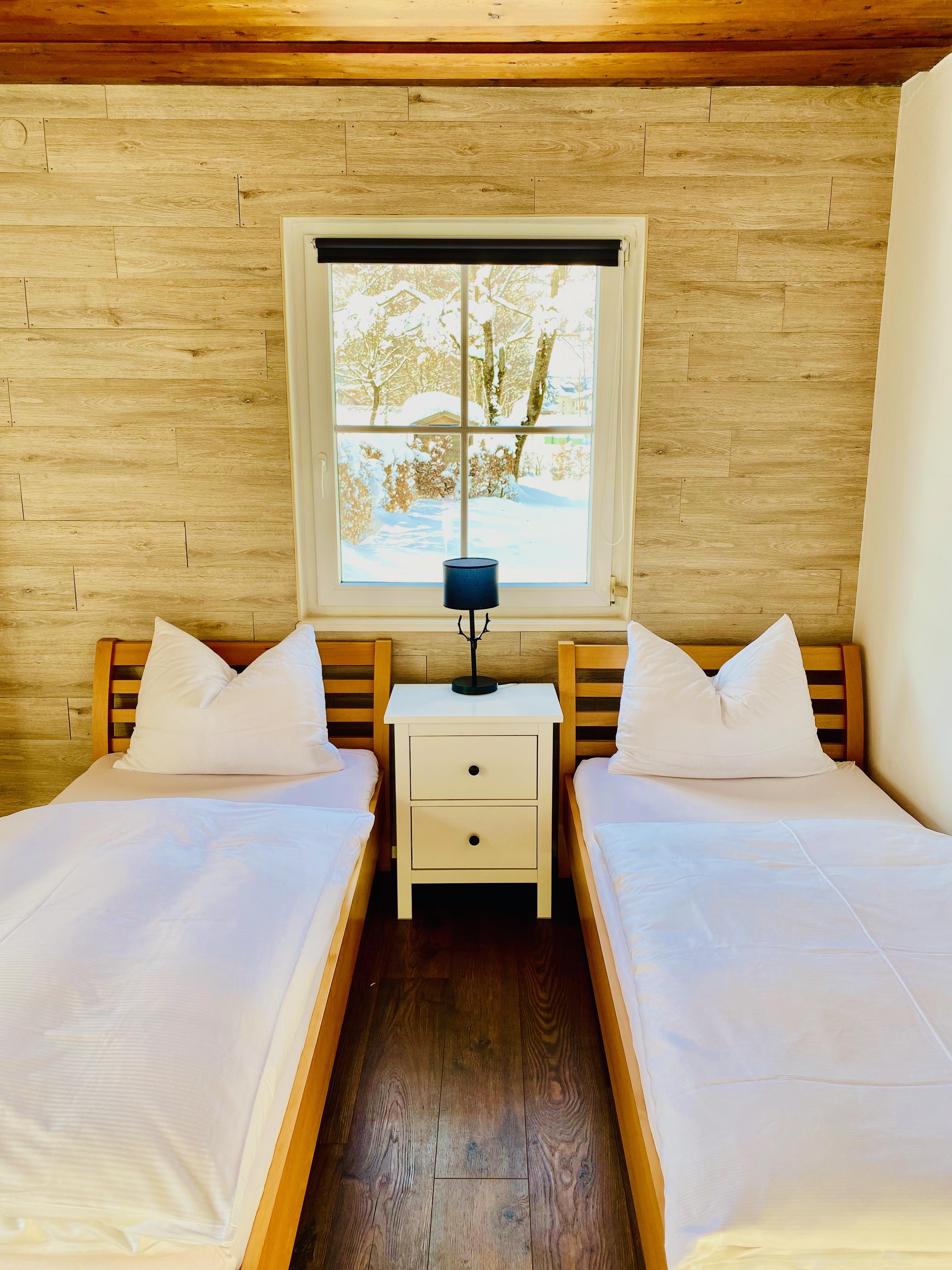 1 Schlafzimmer mit 2 Einzelbetten (können auch zusammen geschoben werden)