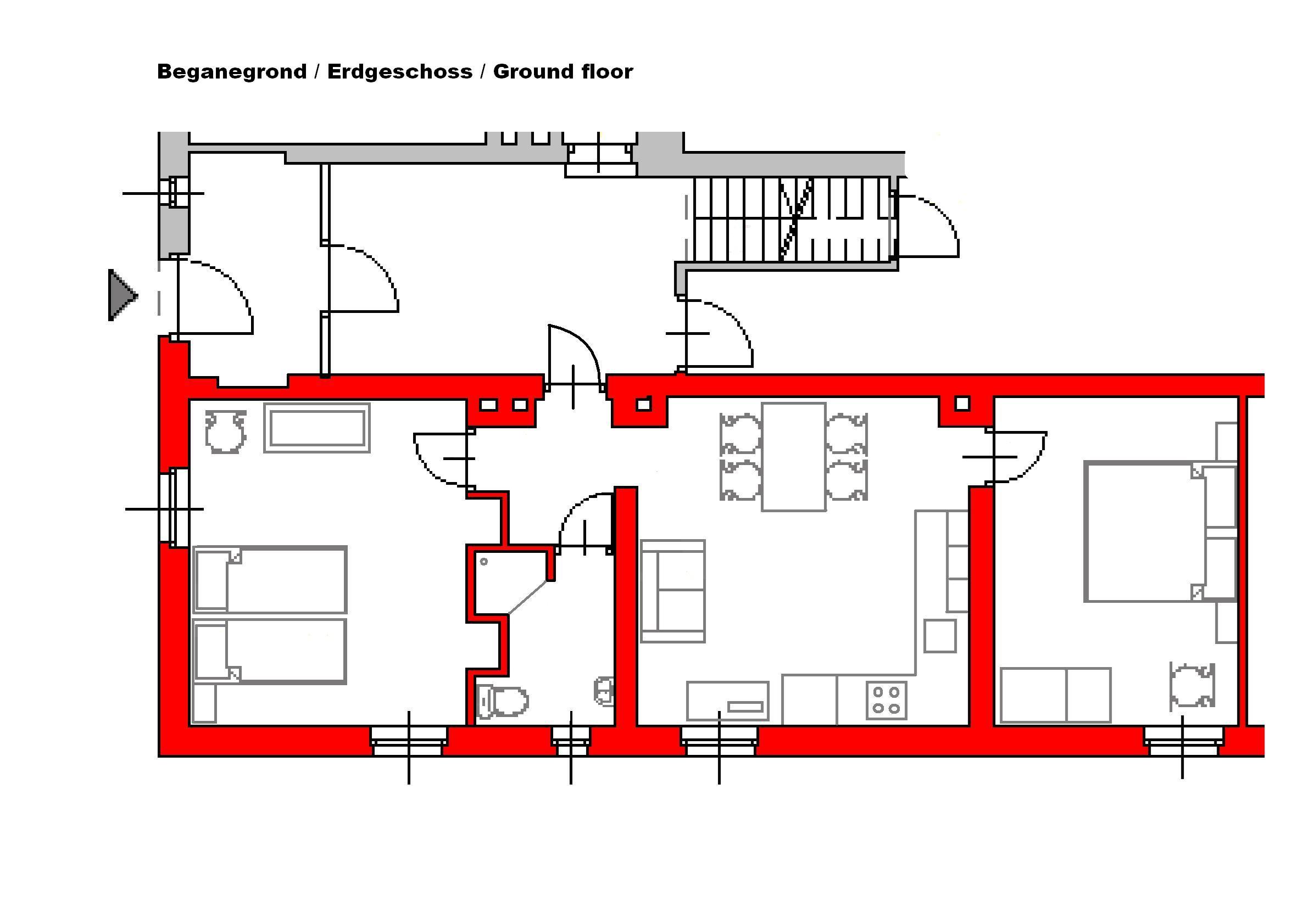 Wohnung im Erdgeschoss mit 2 Schlafzimmern, und moderne voll ausgestatteter Wohnküche.