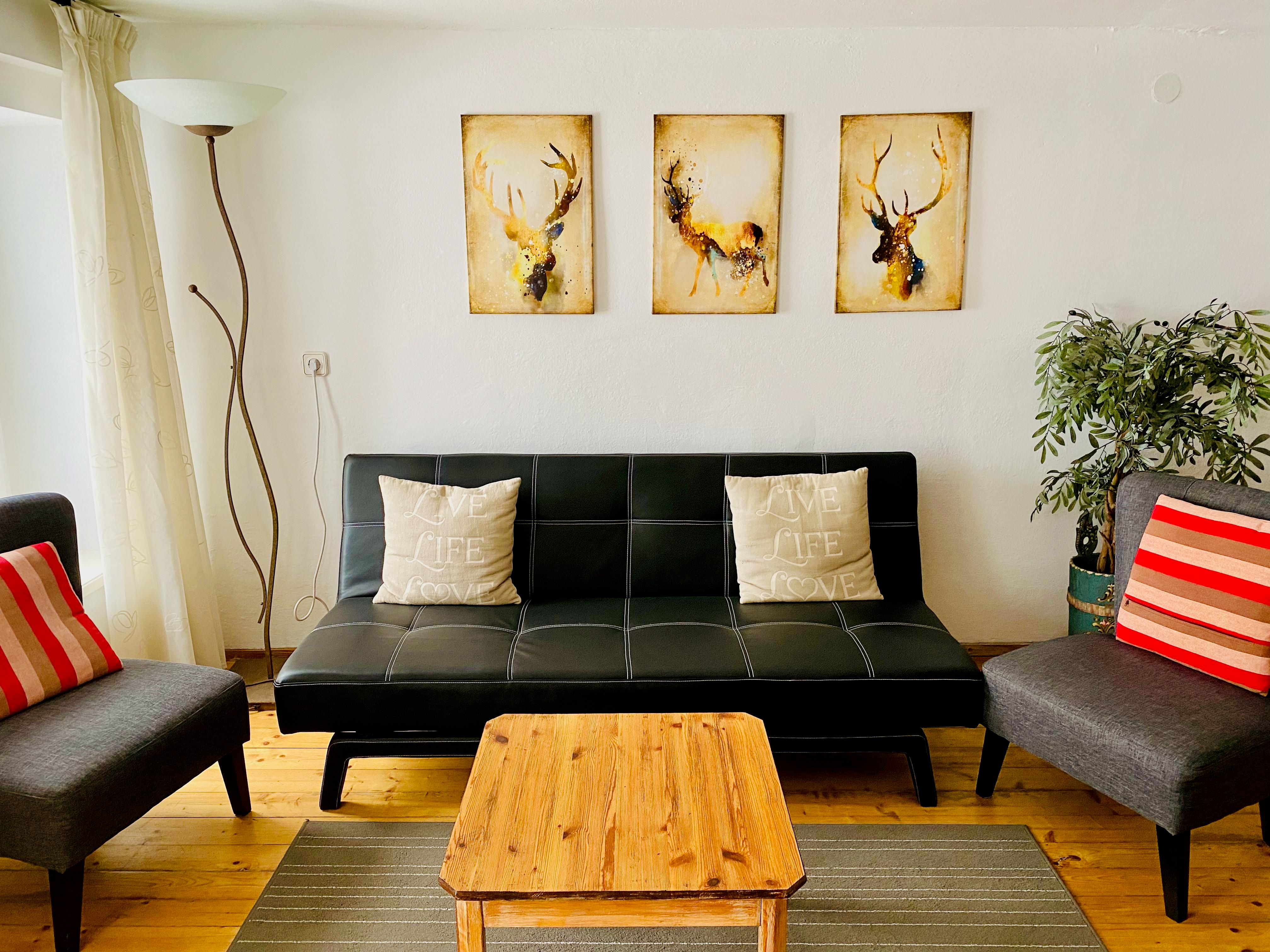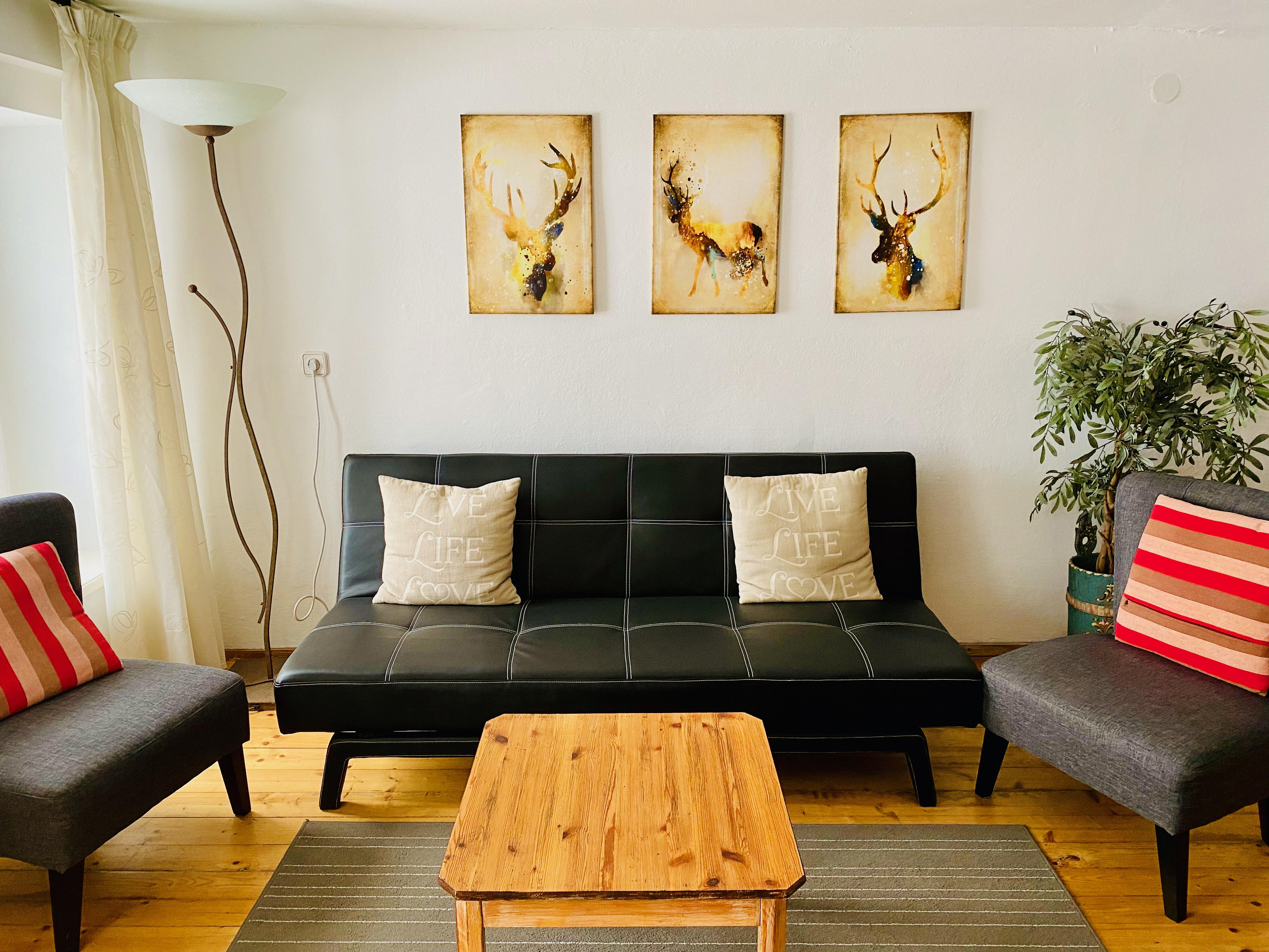 Ein Sofa lädt zu gemütlichen Stunden ein.