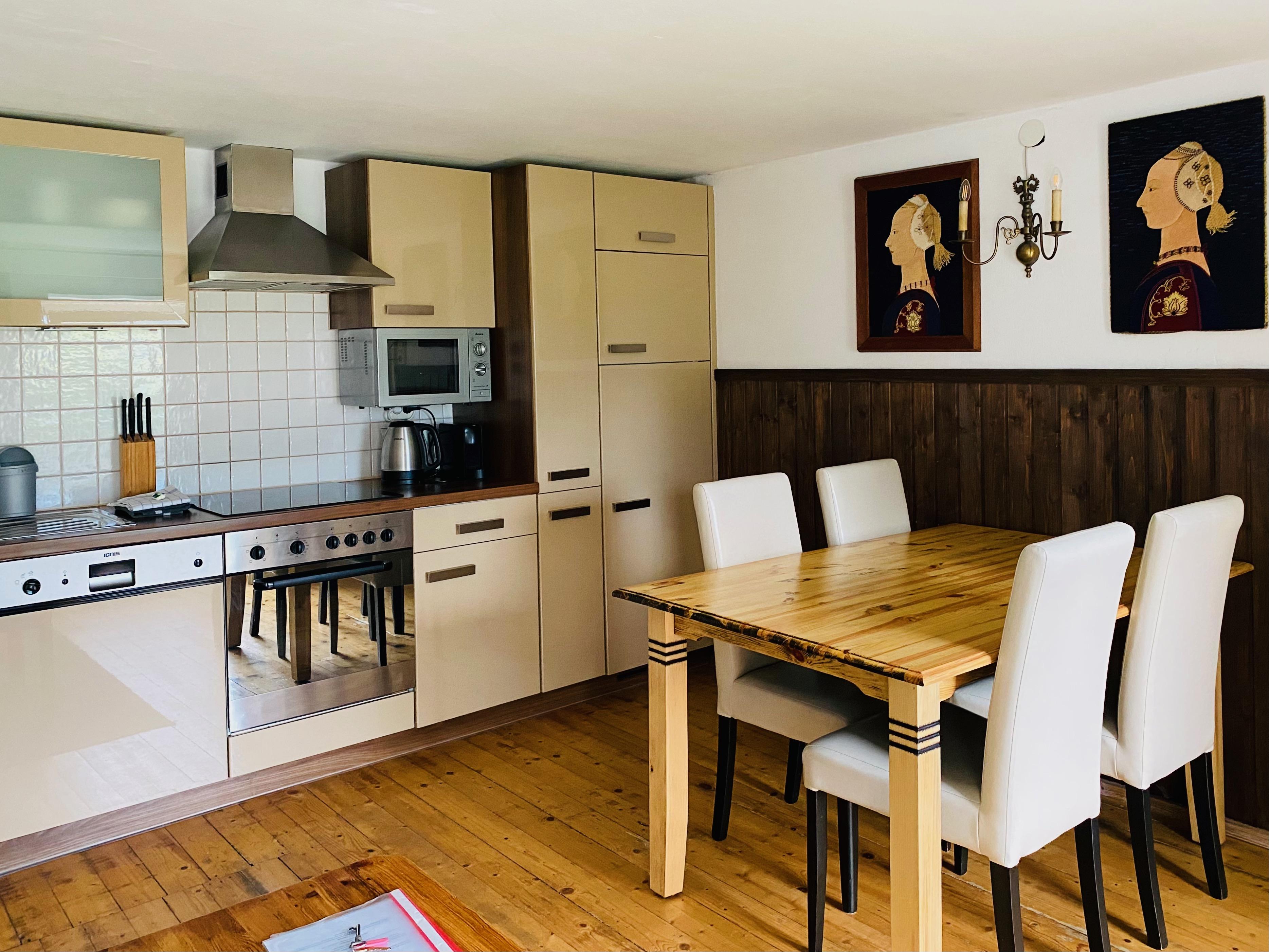 Eine Wohnung im Erdgeschoss mit zeitgemäßen eingerichteten Wohnküche.