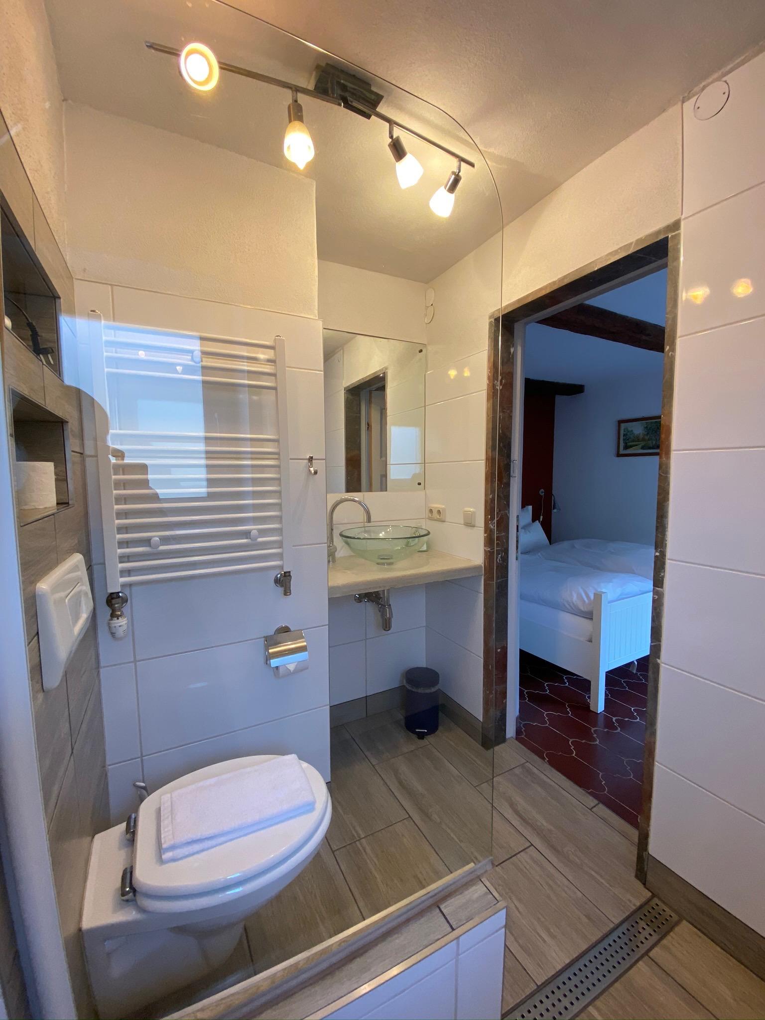 Das Bad mit Dusche und Toilette lässt keine Wünsche offen.