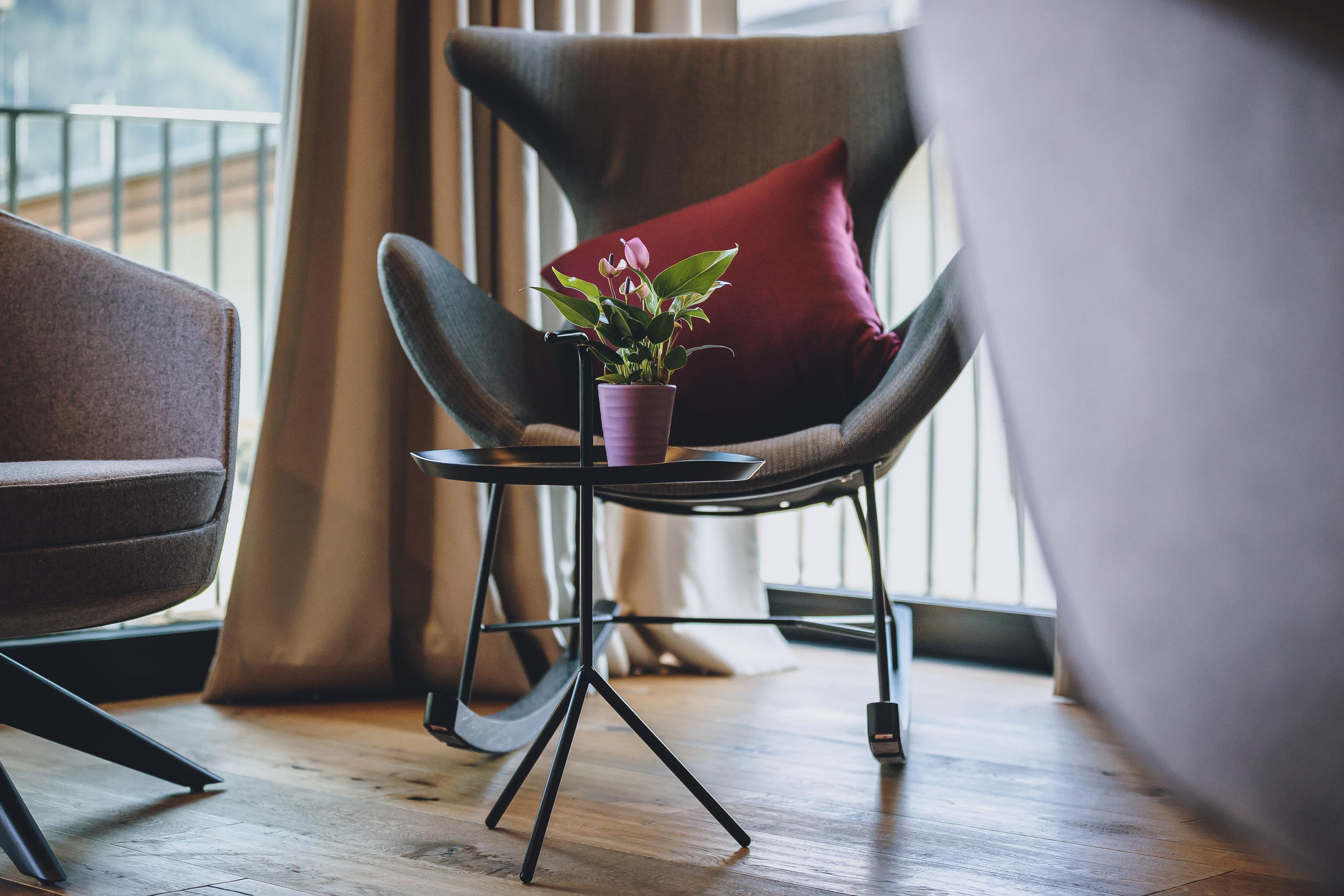 Der Balkon ist möbliert, bietet einen traumhaften Bergblick und lädt zum Verweilen ein.