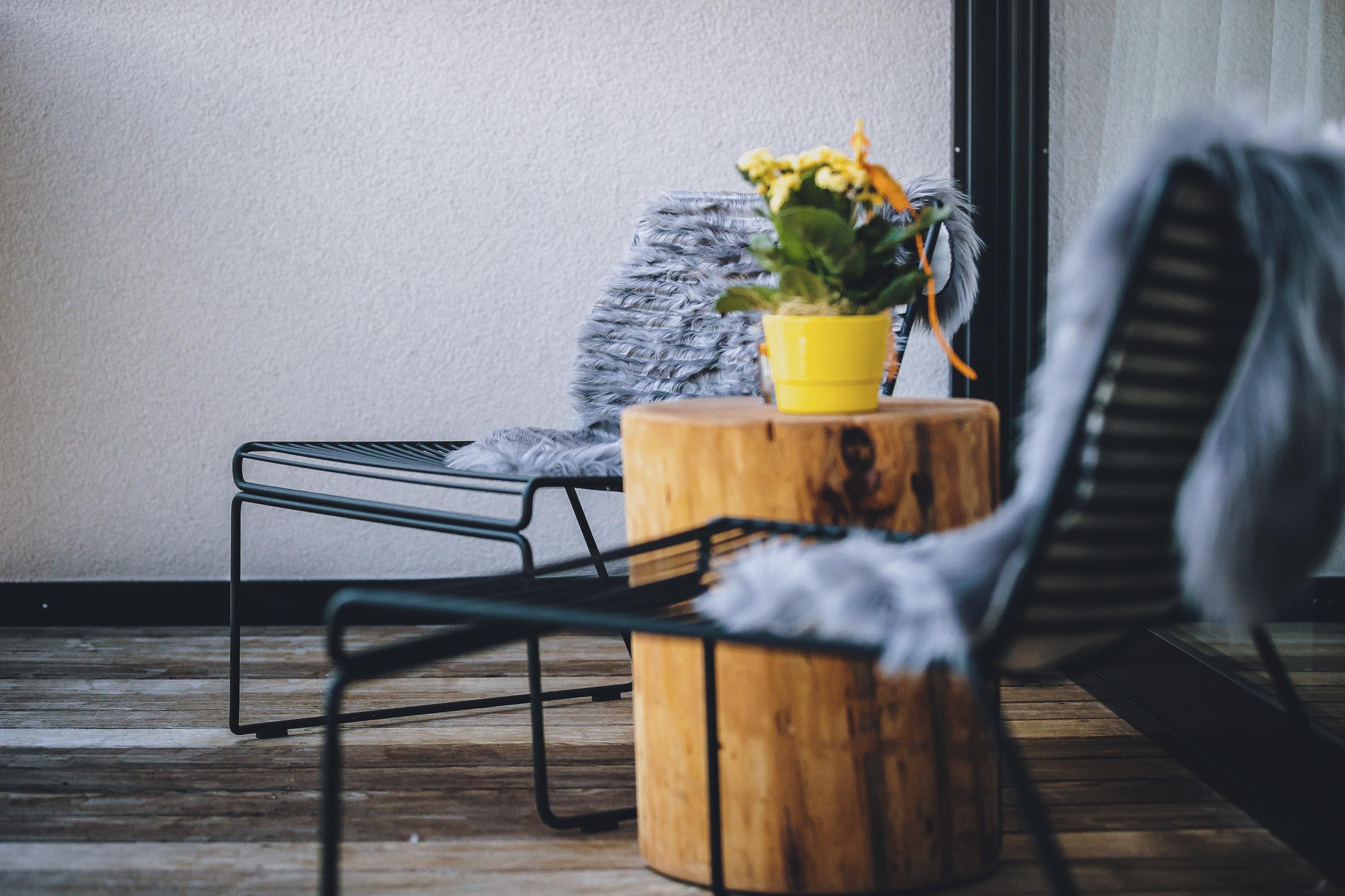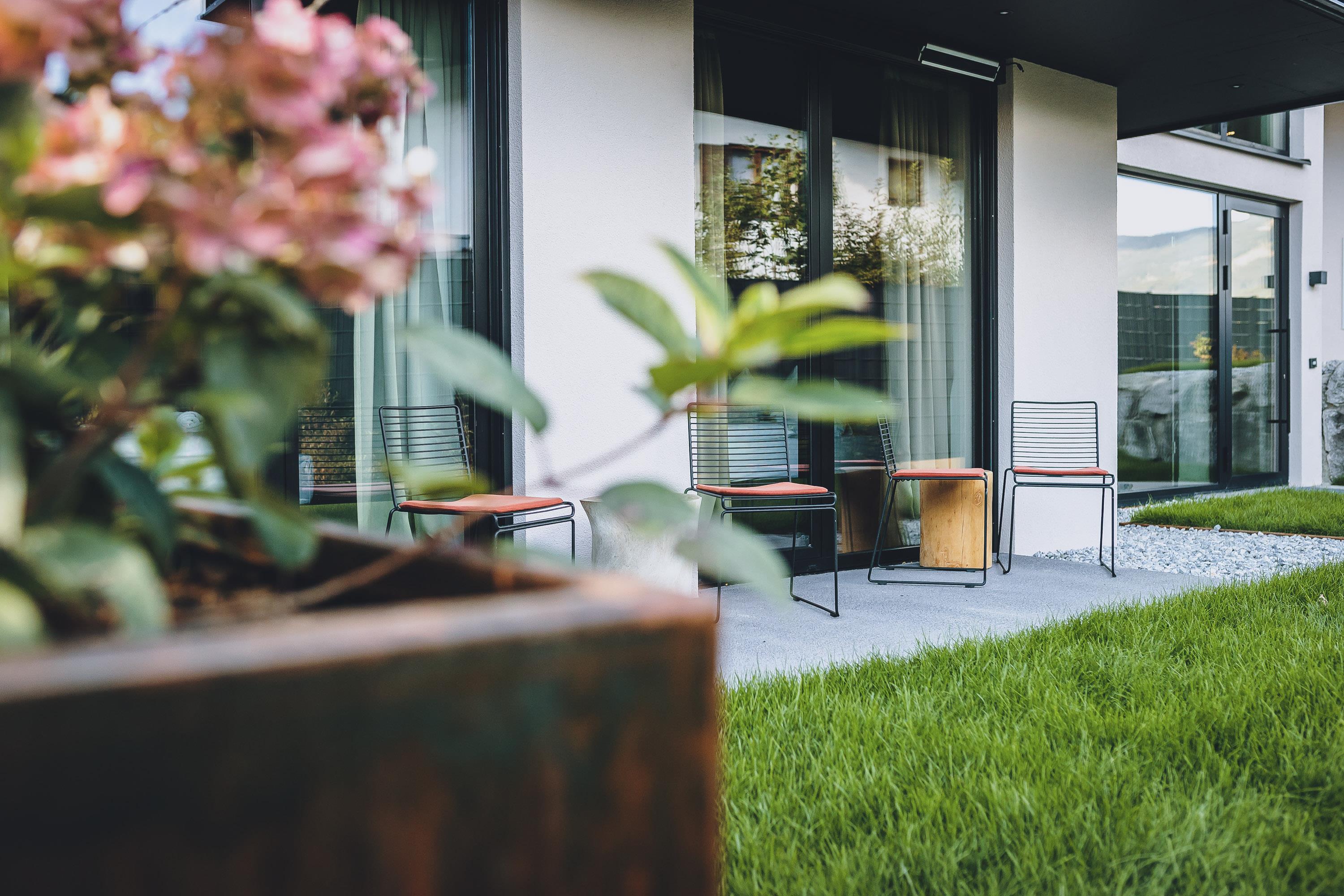 Der Balkon ist möbliert, bietet einen traumhaften Bergblick und lädt zum Verweilen ein.