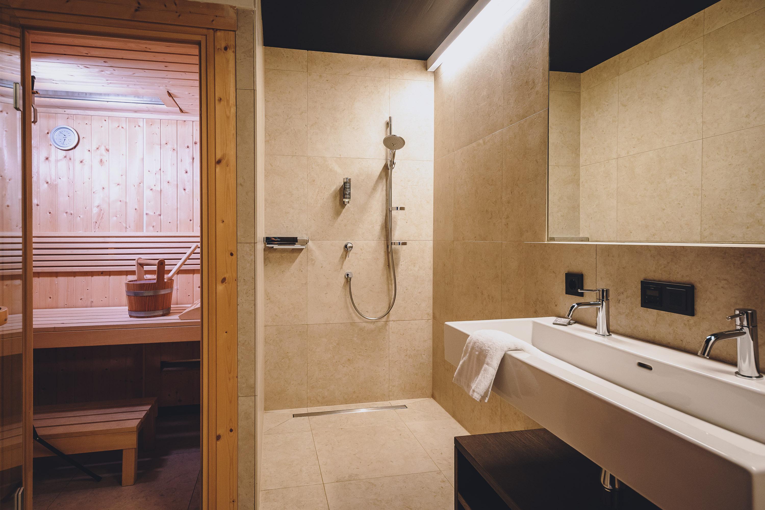 Aufgeteilt auf 2 Ebenen bietet die Ferienwohnung 2 separate Schlafzimmer mit jeweils einem Bad en suite wovon 1 Badezimmer eine private Sauna bietet. Beide Schlafzimmer sind ausgestattet mit einem Smart-TV und einer Kommode. Von beiden Schlafzimmern gelangt man direkt in den Garten und kann den Frühstückscafe im Grünen genießen.