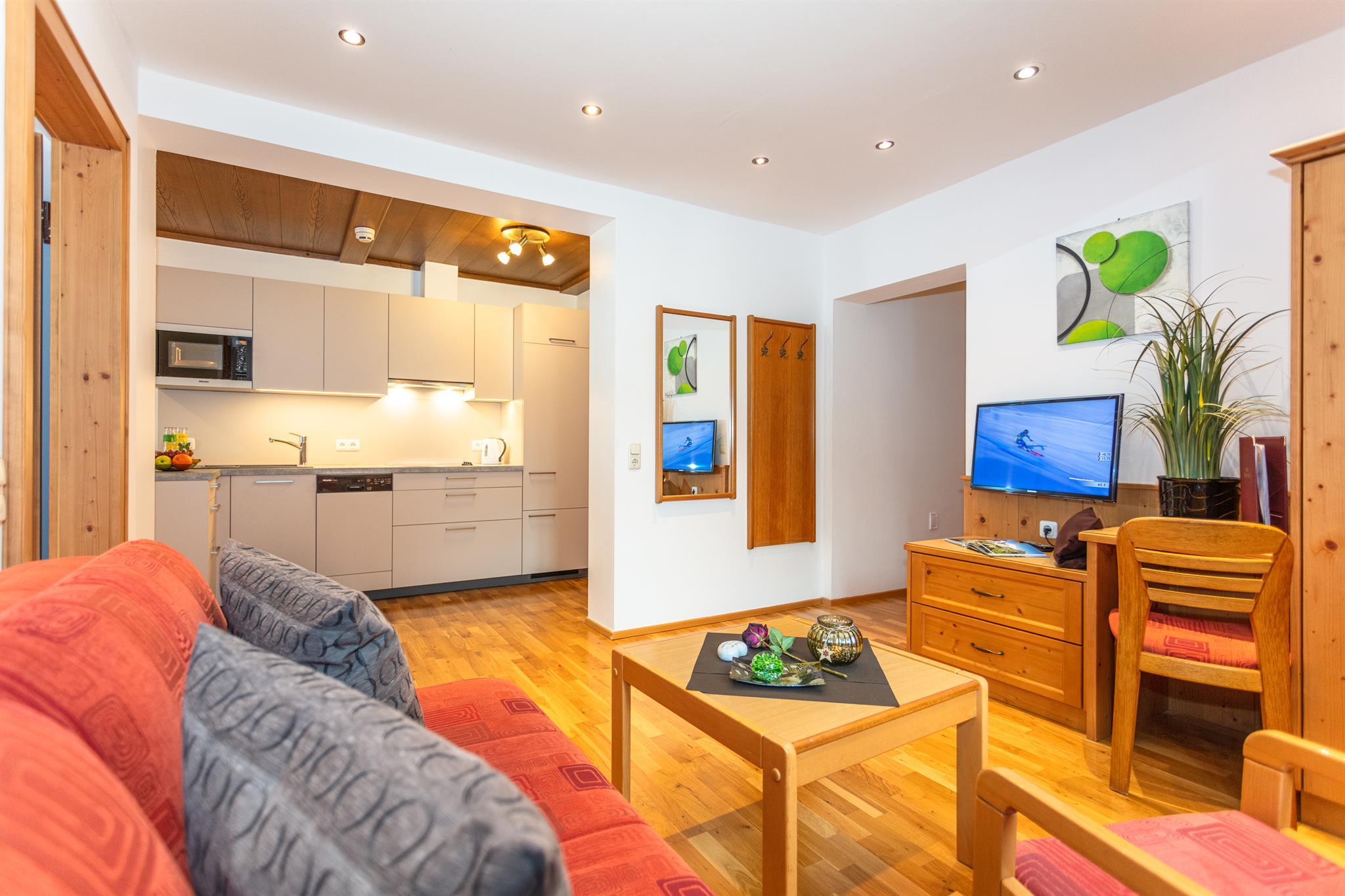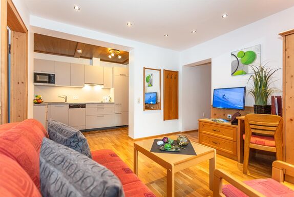 Apartment Sonnenalm: 2 getrennte Schlafräume / grosse Wohnküche / Kabel- TV im allen Räumen, Internet/ W-LAN, Dusche/WC, 2 Balkone, Wohnfläche 63 m², Bettwäsche sowie Dusch-und Handtücher inklusive, ohne Verpflegung, Brötchenservice möglich