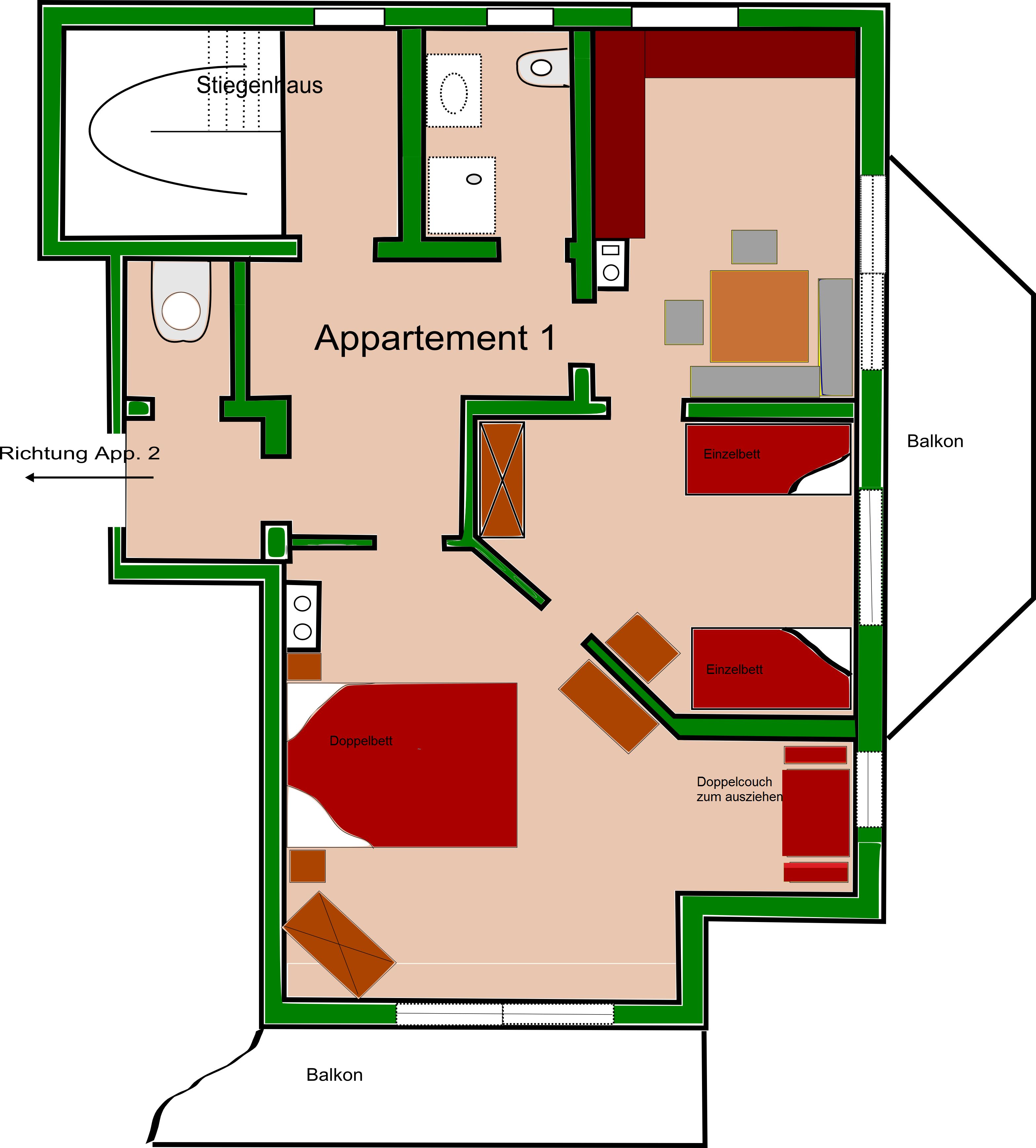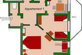 Dieses und das 2. App. sind besonders geeignet für befreundete Familien, es wohnen sonst keine Gäste auf dieser Etage.