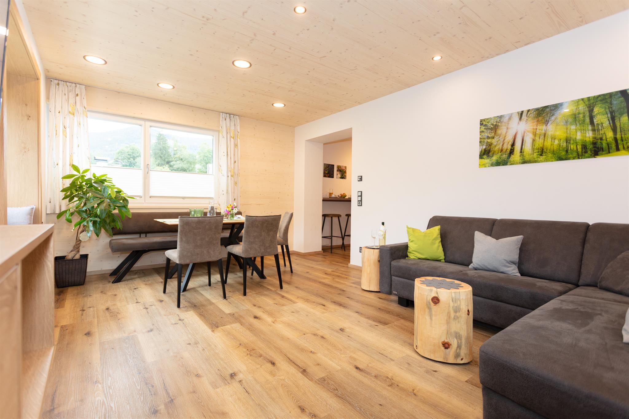 Gemütliches Komfortappartement für 4 Personen 60 m² oder für bis zu 7 Personen 80 m², mit Wohnküche inkl. Geschirrspüler, Gemütliche Essecke und Ausziehcouch, Radio, Kabel-TV, Internet, Safe, zwei separate Schlafzimme, zwei sep. Badezimmer, 2 WC, Balkon