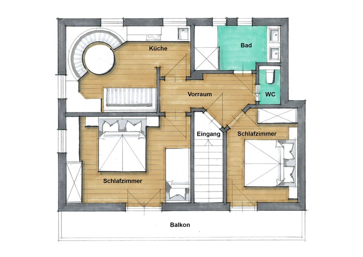 • 2 Schlafzimmer mit Balkon