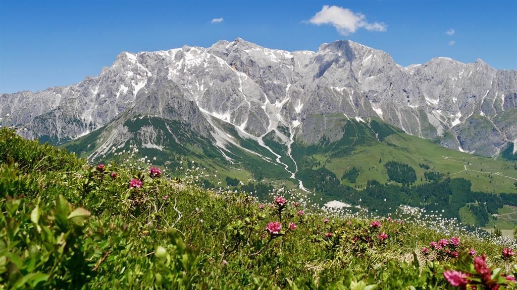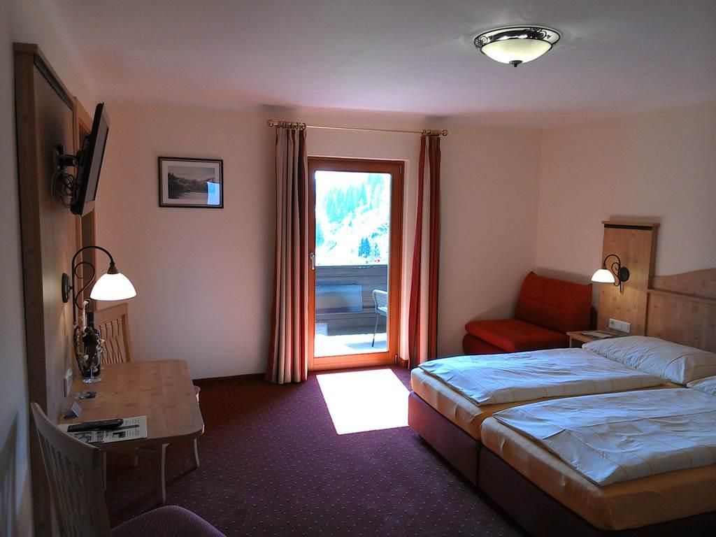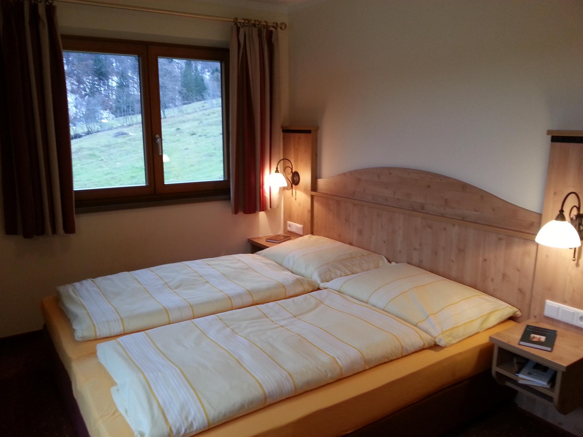 Anspruchsvoll eingerichtetes Zimmer mit hochwertigen Boxspringbetten und orthopädischen Bandscheibenmatratzen, Sat TV, Safe, kostenloses WLAN, großes Bad mit Handtuchtrockner, Kosmetikspiegel, Fön, Fußbodenheizung. Südwestbalkon mit Sitzmöbeln mit Blick auf die Niederen Tauern, die Wasserfälle im Riedingtal und die Wetterwand. Alle Preise inklusive Hochkönigcard.