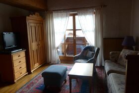 Im 2. Stockwerk, südseitig gelegen, Größe ca. 42m2, für max. 4 Personen. Sehr schöne Wohnung mit Dachschräge, Kinderzimmer, Wohnzimmergarnitur mit integriertem ausziehbarem Doppelbett. Küche im Wohnraum, komplett ausgestattet mit Geschirrspüler Mikrowelle Toaster Geschirr, Kaffeemaschine und Wasserkocher. Badezimmer mit Du/WC, Parkettböden belegt mit Teppichen. Türgegensprechanlage mit Bildschirm Elektroöffner, Kabel-TV. Bettwäsche, Toilettwäsche, pro Person eine Garnitur mit wöchentlichem Wechsel.