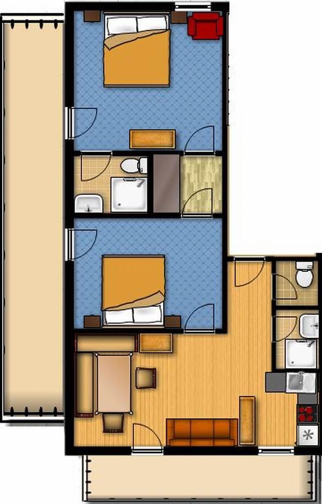 Das Familienappartement Mattehansnock verfügt über 2 Doppelzimmer, von denen 1 Zimmer ein Durchgangszimmer ist. Es gibt 2 Badezimmer mit Dusche. Im Wohnzimmer gibt es außerdem eine Schlafcouch für bis zu 2 Personen. Die Küche ist voll ausgestattet mit Ceranfeld, Backrohr, Kühlschrank mit Gefrierfach, Mikrowelle, Geschirrspüler und Kaffeemaschine. Das Appartement Mattehansnock verfügt sogar über 2 Balkone.