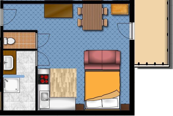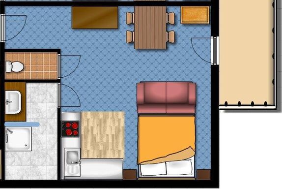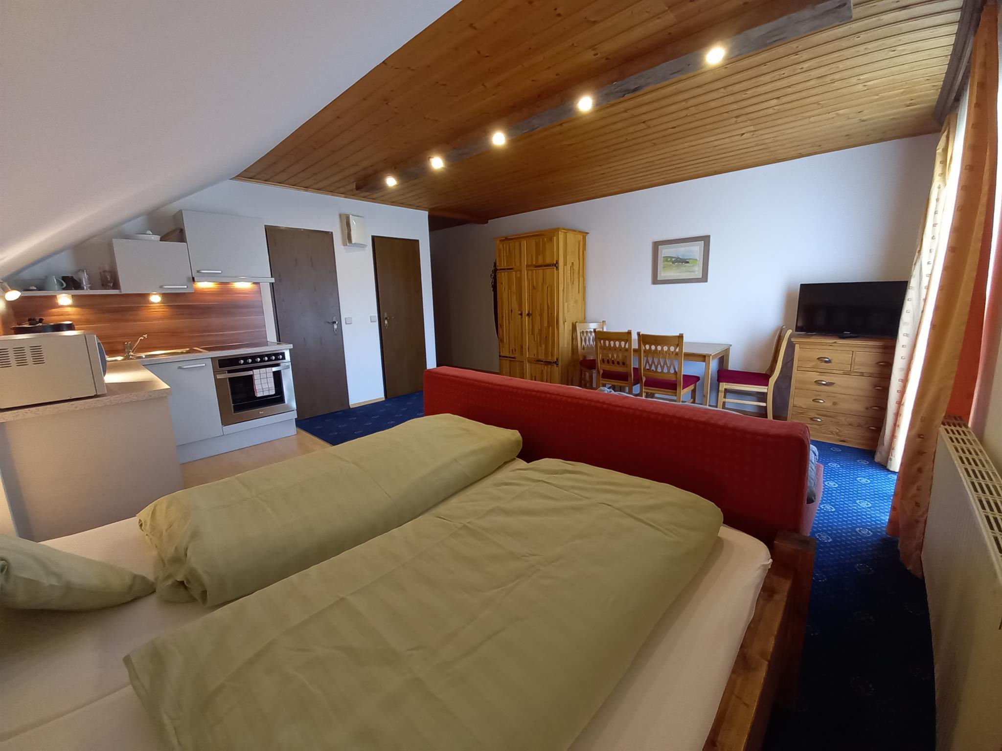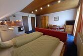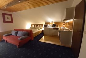 Das 35 m² große Studioappartement Saureggnock verfügt über ein gemütliches Doppelbett und eine Schlafcouch für bis zu 2 Personen. Dusche und WC sind hier getrennt. Die Küche ist voll ausgestattet mit Ceranfeld, Backrohr, Kühlschrank mit Gefrierfach, Mikrowelle, Geschirrspüler und Kaffeemaschine. Vom Balkon aus hat man einen wunderbaren Blick ins Tal.