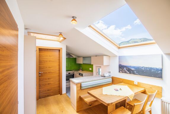 Diese neu renovierte Ferienwohnung ist ideal für Familien oder befreundete Paare, die gerne 2 getrennte Schlafzimmer mit je Dusche und WC schätzen. Ein Schlafzimmer verfügt über einen Balkon mit tollem Seeblick. In der neuen komplett ausgestatteten Wohnküche (mit Geschirrspüler) können Sie sich etwas kochen, wann immer Sie wollen. Die Wohnung ist mit Holzböden ausgestattet und bietet mit dem neuen Zirbenbett und dem Zirbenschrank die optimale Voraussetzung für einen erholsamen Urlaub.