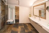 64 m² ist sie perfekt für 4-6 Personen. In den Schlafzimmern erwarten Sie je ein Boxspringbett. Die schönen Stunden mit Ihren Lieben können Sie ganz ungestört im großen Wohnraum mit Küchenzeile, Essecke und Schlafcouch verbringen oder Sie genießen die Abendsonne auf dem Balkon. Bad mit Infrarot-Dusche und WC sind getrennte Räume. Keine Teppichböden.