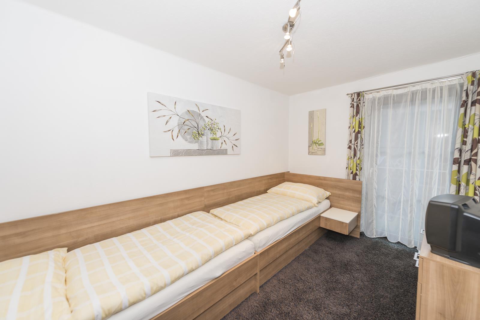 Appartement für 4-7 Personen mit 2 Schlafzimmer mit Doppelbett und Einzelbett. Küche, Wohnraum mit Doppelschlafcouch, Sitzecke, DU/WC getrennt, TV, Telefon und Internetanschluß, Balkon.