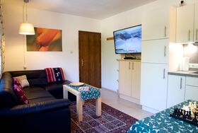 Bei uns sind Sie genau richtig! Eine gemütliche Ein-Schlafzimmer-Wohnung: Schlafzimmer, Badezimmer, Essbereich, Wohnzimmer und voll ausgestattete Küche. Flachbildschirm-TV und DVD-Player. Der Balkon steht nördlich und blickt auf den Hinterhof: hier genießen Sie das sanfte Rauschen des Saalach Flusses direkt hinter den Bäumen. Natürlich bieten wir kostenfreies WLAN, Tücher, Bettwäsche und Fön an.