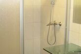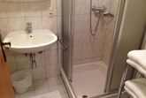 * Badezimmer mit Dusche, Waschbecken und Haartrockner
