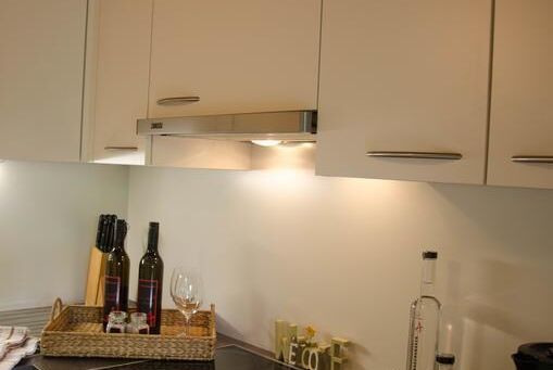 * Küchenzeile mit Ceranfeld und Backofen, Kühlschrank mit Gefrierfach, Geschirrspüler,