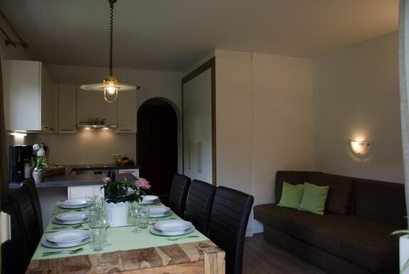 * Wohnraum mit gemütlicher Essecke und Schlafcouch (2 Personen)