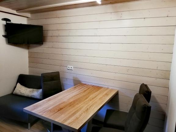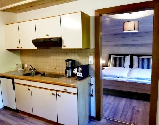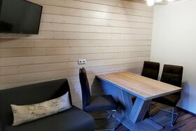Ein Schlafzimmer, DU/WC, Wohnküche mit Sitzsofa, SAT/TV, Internetanschluss, Geschirr, Bettwäsche und Handtücher wird bereitgestellt.