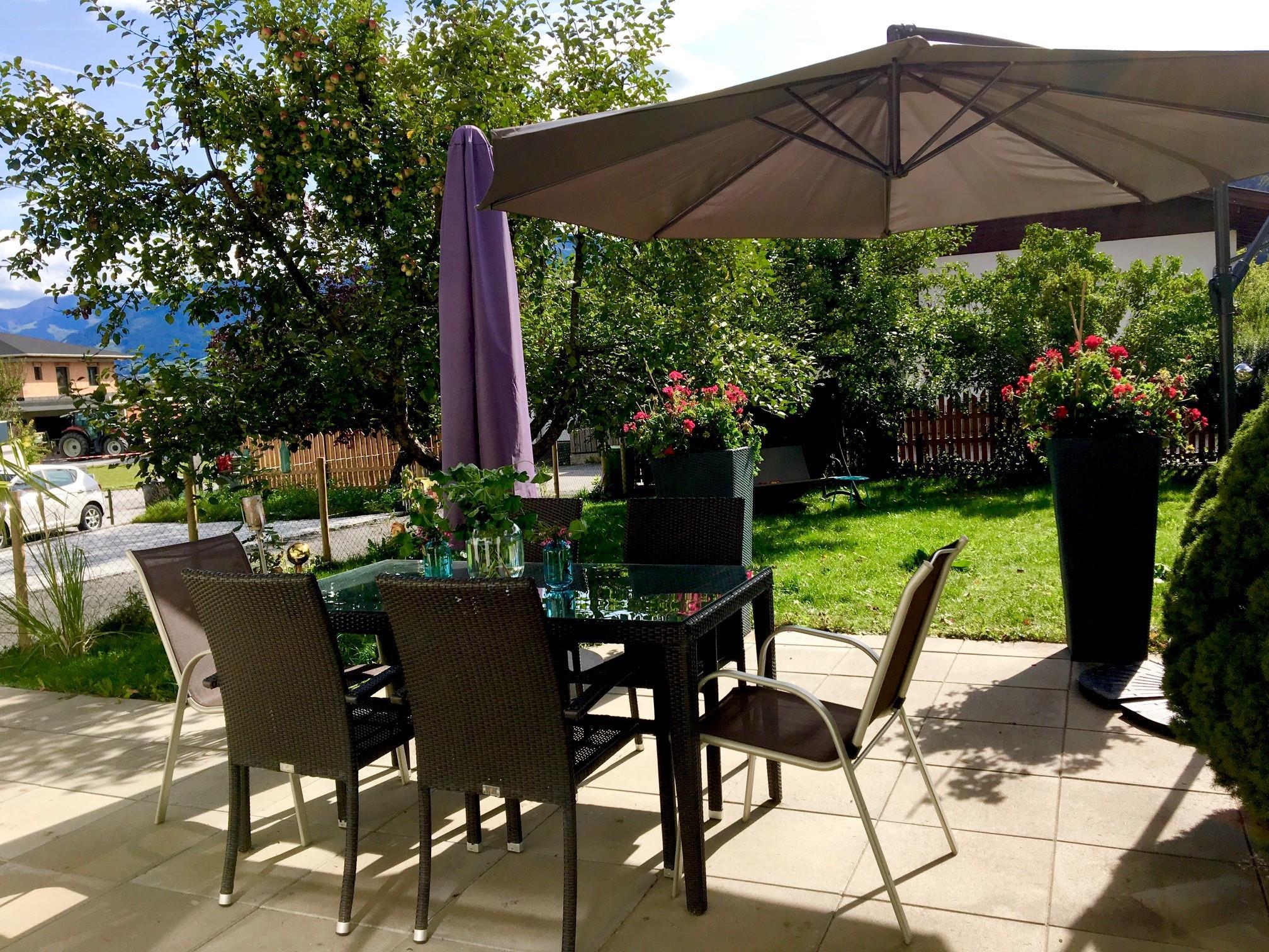 Moderne Ferienwohnung in einer ruhigen Wohngegend zwischen Saalfelden und Leogang. Die Wohnung verfügt über eine voll ausgestattete Küche, ein Schlafzimmer, ein Wohnzimmer mit hochwertiger Schlafcouch, Bad mit Dusche und einen großen Balkon.