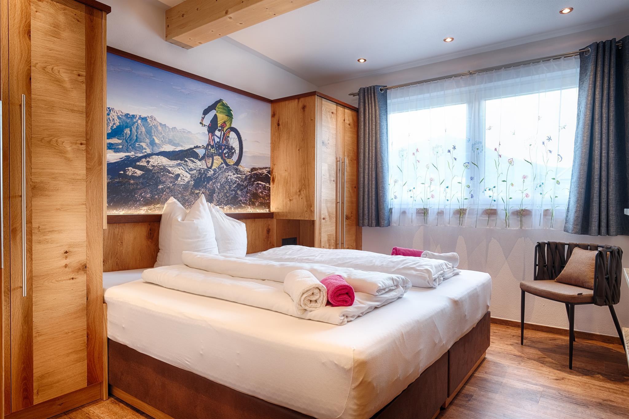 Im Frühjahr 2019 komplett neu renovierte gemütliche, familiär geführte Nichtraucherpension in ruhiger südseitiger Lage, nahe Gondelbahn Asitz und Steinbergbahn, sowie EpicBikePark Leogang. 4 Komfortzimmer und 2 neue Appartements für 2-6 Personen mit 55 bzw. 82 m² alle mit Balkon, ein heimeliger Aufenthaltsraum mit Gästeküche, Gästekühlschrank, Kabel-TV, Radio,Haarföhn, Bikegarage, Reperaturständer, Luftkompressor