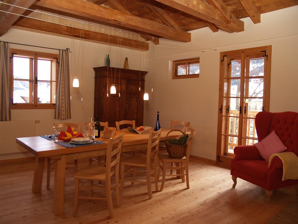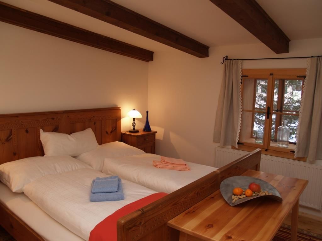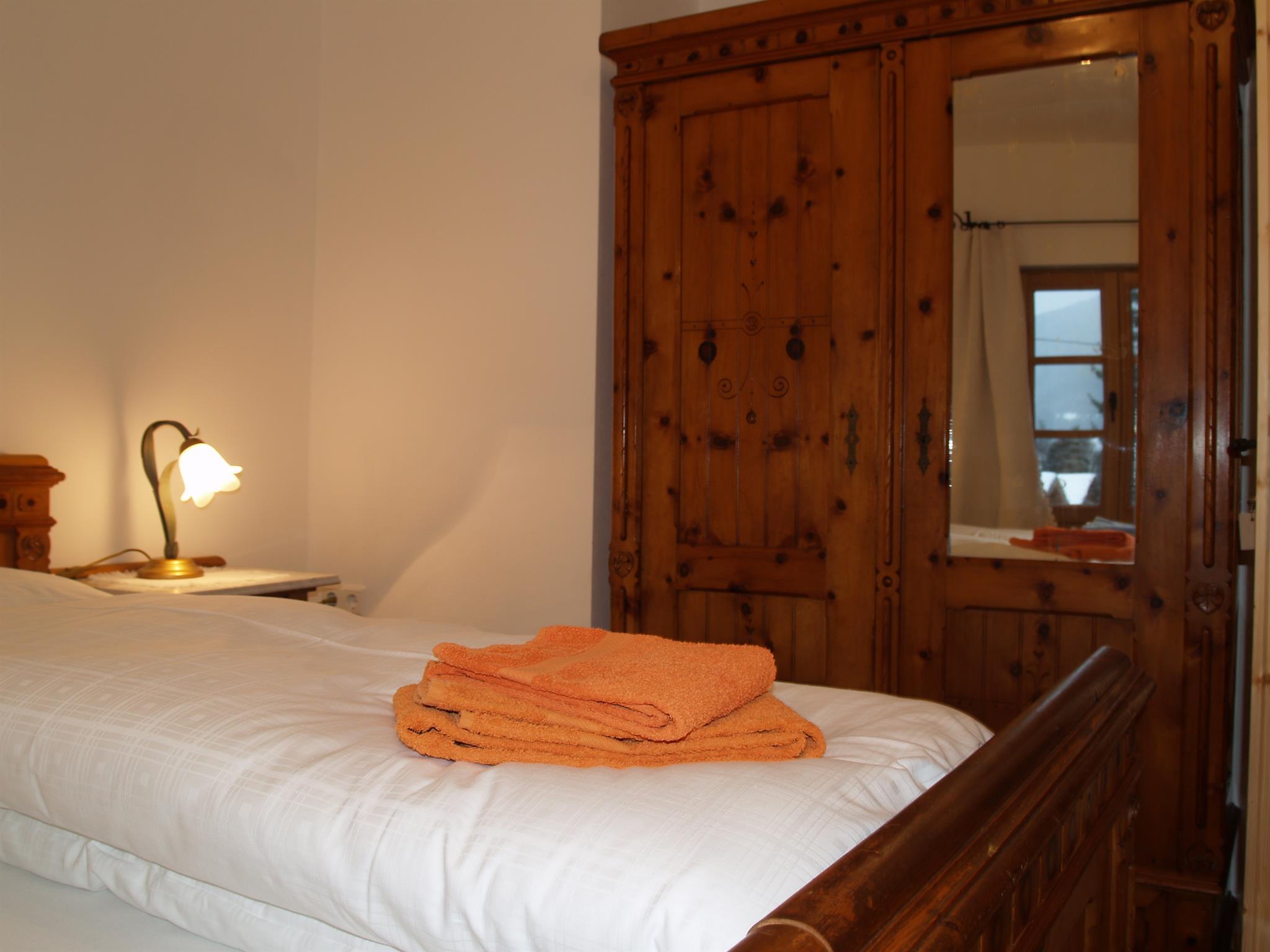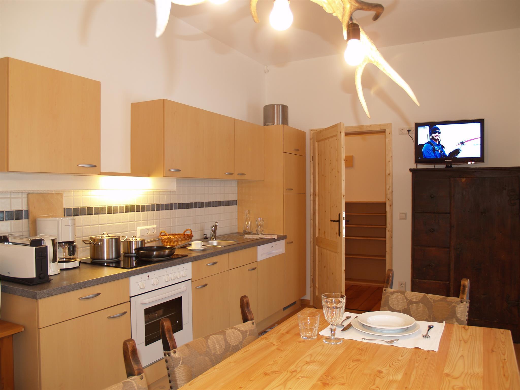 Wohnküche, ein Schlafzimmer mit Doppelbett, ein Schlafzimmer mit Doppelbett und Dusche im Zimmer, ein Matratzenlager für 4 Personen, TV, Internet, Geschirrspüler, Bad mit WC, WC, Haarföhn, Infrarotwärmekabine, Schischuhtrockner,