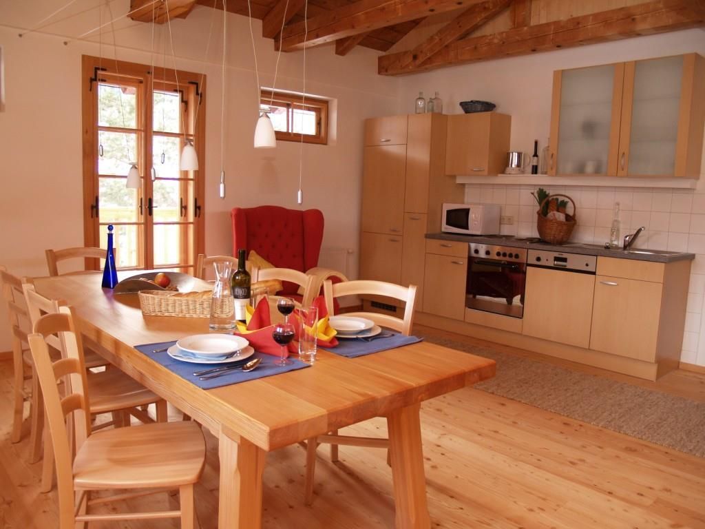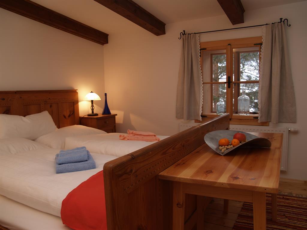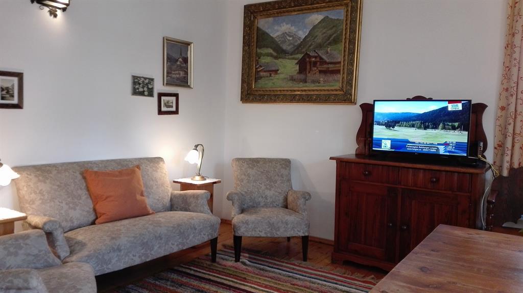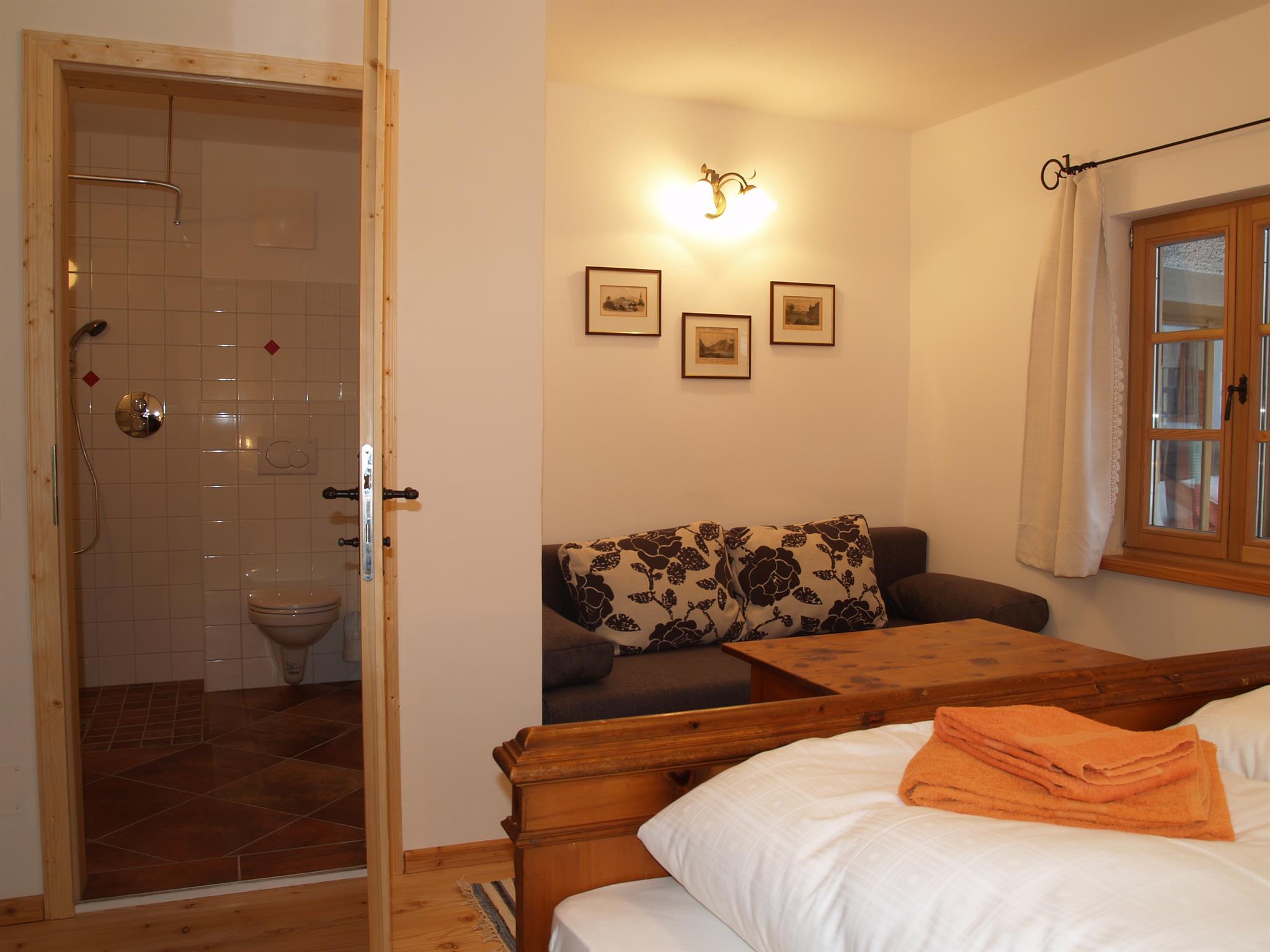 Wohnküche, ein Schlafzimmer mit Doppelbett, ein Schlafzimmer mit Doppelbett und Dusche im Zimmer, ein Matratzenlager für 4 Personen, TV, Internet, Geschirrspüler, Bad mit WC, WC, Haarföhn, Infrarotwärmekabine, Schischuhtrockner,