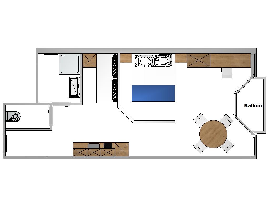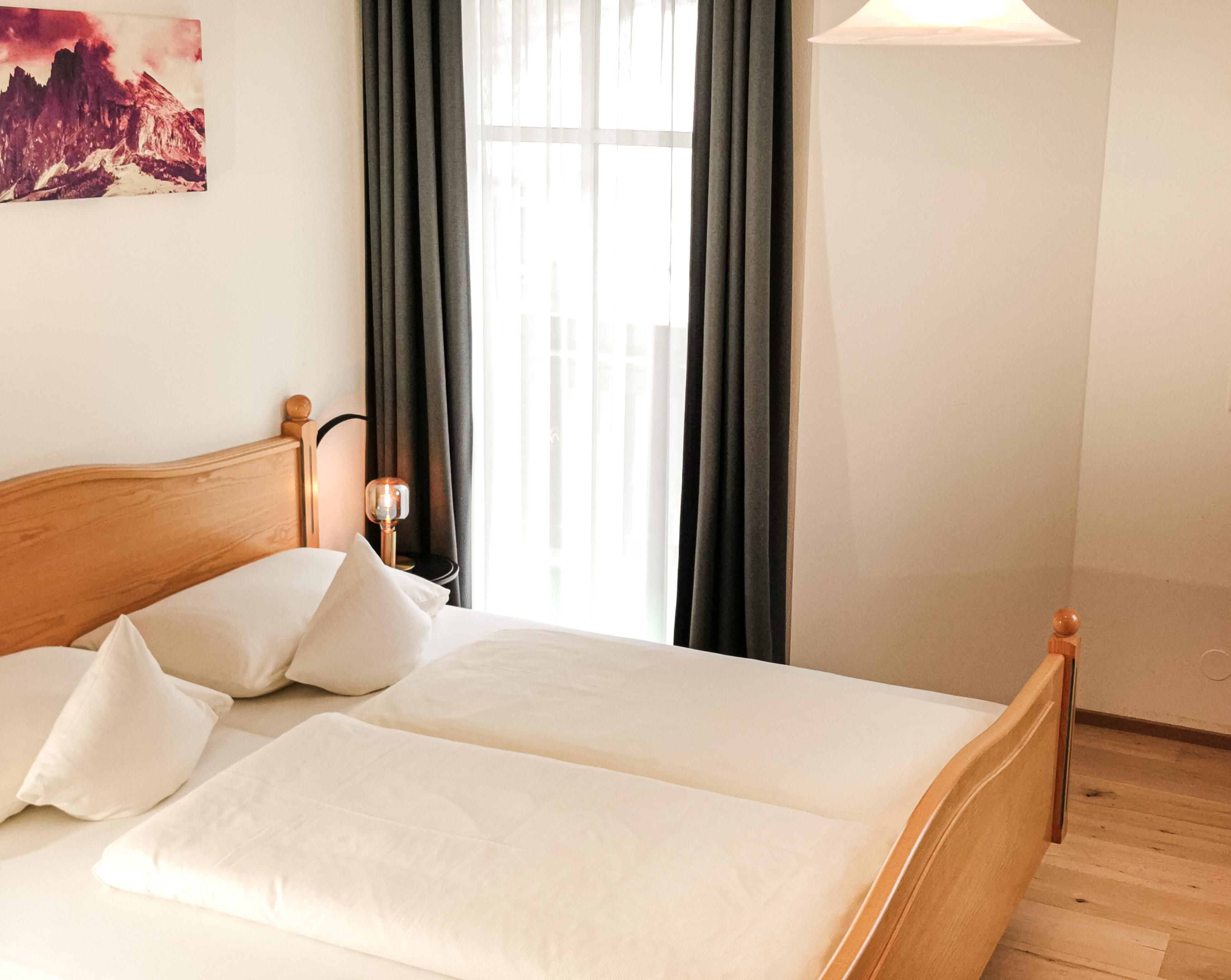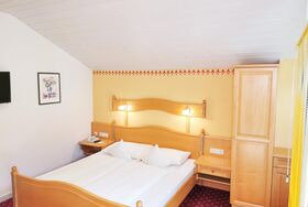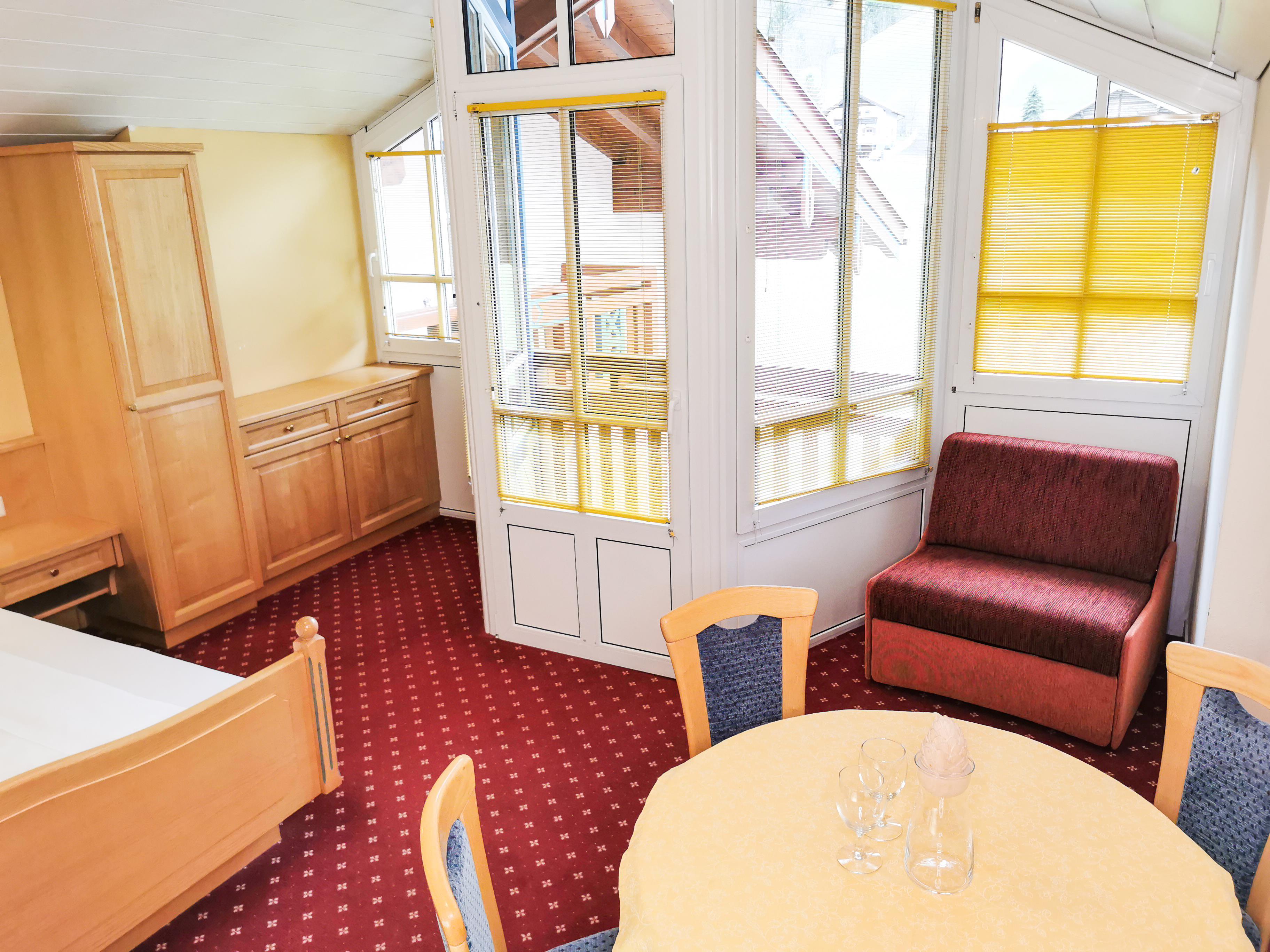 Mansarde mit Doppelbett . Couch (1 Pers) . Flat-Screen-Kabel-TV . Radio . Zimmersafe . W-Lan . teilw. Balkon . Bad mit Dusche . Toilette sep . Haarföhn . Kosmetikspiegel . TEEKÜCHE: 2er-Kochfeld . Mikrowelle . Kühlschrank . Tägl Reinigung inklusive