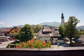 gemütliche Sonnenterrasse mit Blick auf den Faistenauer Dorfplatz