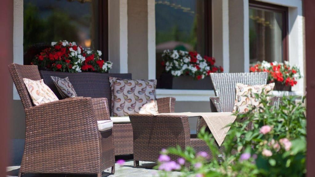 gemütliche Sonnenterrasse mit Blick auf den Faistenauer Dorfplatz