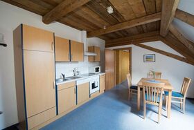 Appartements Campingplatz Unsere Appartements sind circa 55 m² groß und verfügen über ein Schlafzimmer mit einem Doppel- und einem Etagenbett sowie einer Wohnküche mit Essecke und Kabel TV. DU/WC befinden sich in einem extra Familienwasch-raum, drei Stufen außerhalb des Appartements. Inkludiert sind auch Geschirrtücher, Handtücher und Bettwäsche. Auf Wunsch bieten wir die Appartements auch mit Frühstück an. Schöne, ruhige Lage - direkt an der Talstation der 8er-Kabinenbahn (50m). 1 Wohnung für 4 Personen (bis zu 5 Pers. mit Zustellbett möglich) Restaurant, Schischule, Sportgeschäft, Schikindergarten befinden sich im direkt angrenzenden Schizentrum Mauterndorf.