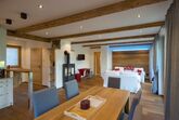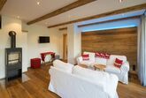 • 1 großes Wohnzimmer mit hinterleuchteter Altholzwand: Essplatz für 6 bis 8 Personen, komfortable Sitzgarnitur, komplett eingerichtete moderne Küche, Bar, Fernseher, Holzofen