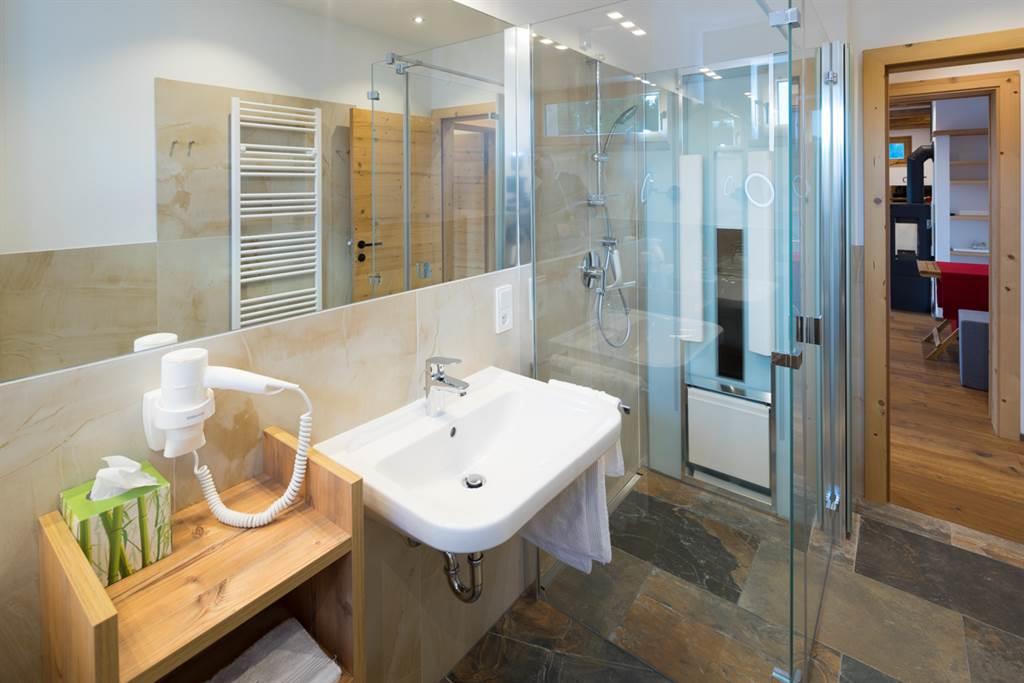 • 1 Badezimmer: Dusche mit Infrarotelement, WC, 2 Wascheinheiten, Kosmetikspiegel sowie Handtuchtrockner