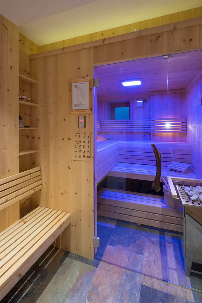 Eine Zirbenholzsauna mit Stimmungslicht für 6 Personen steht Ihnen jederzeit kostenlos zur Verfügung.