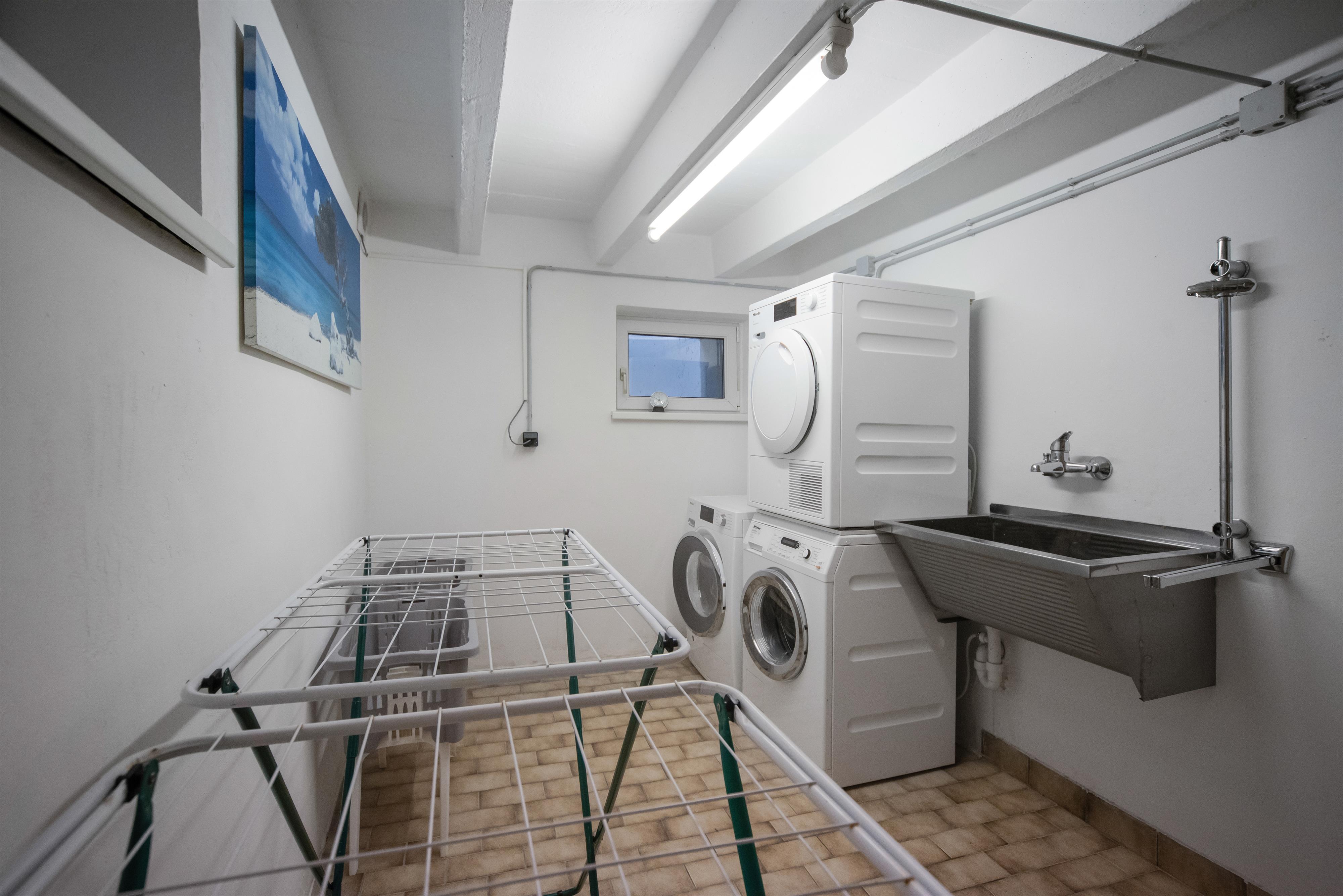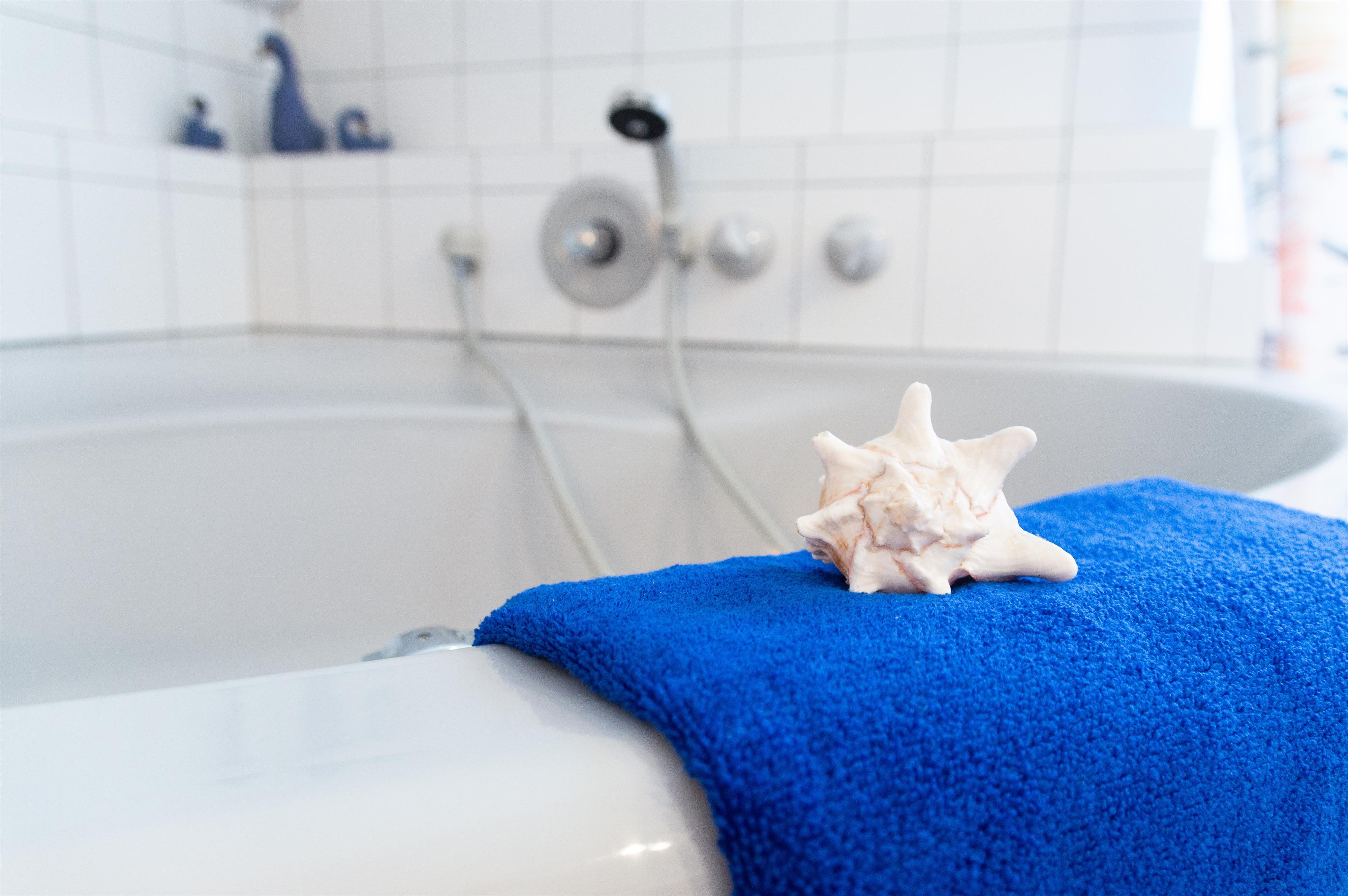 Im 1. Stock ist ein geräumiges Badezimmer mit einer großen Badewanne, Waschbecken und Toilette - im Erdgeschoß ein kleines Badezimmer (2024 komplett saniert)mit Dusche, WC und Waschbecken.